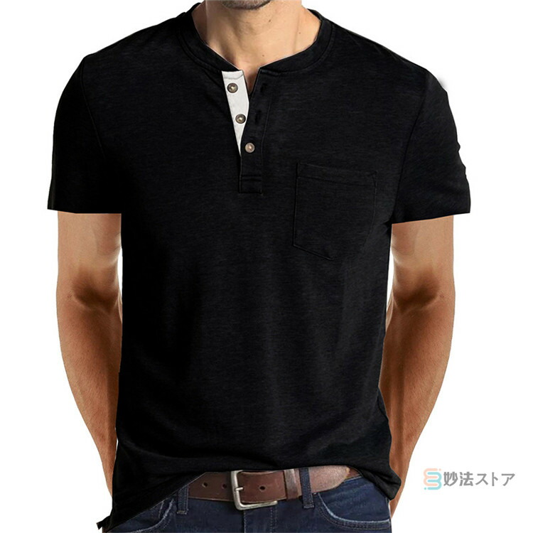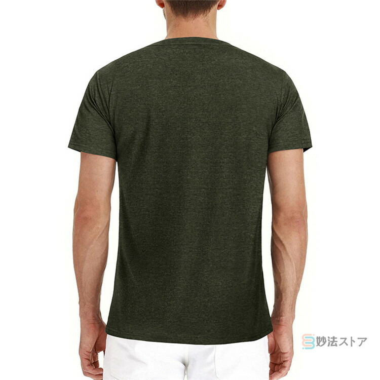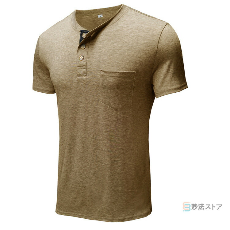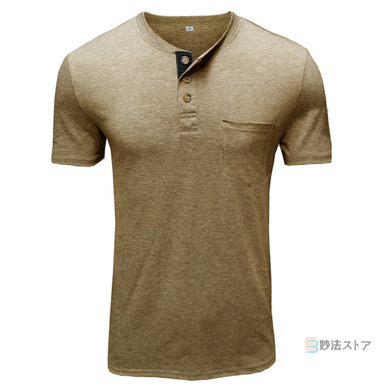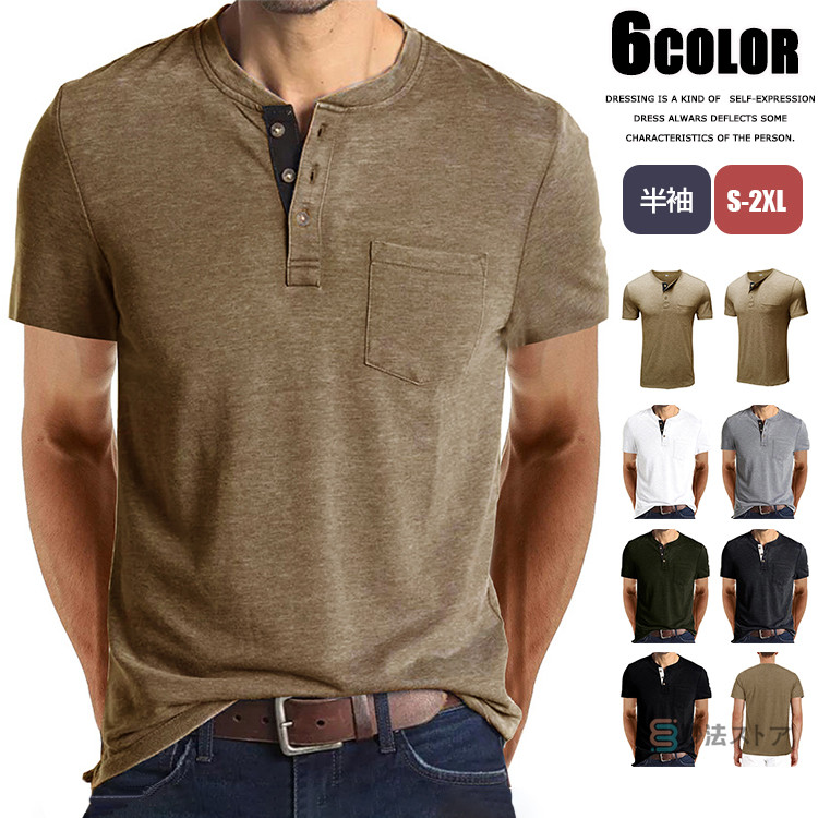 tシャツ メンズ ヘンリーネック 半袖 トップス Tシャツ カットソー 通販 S M L XL 2XL カーキ ライトグレー 白 ダークグレー オリーブ 黒
