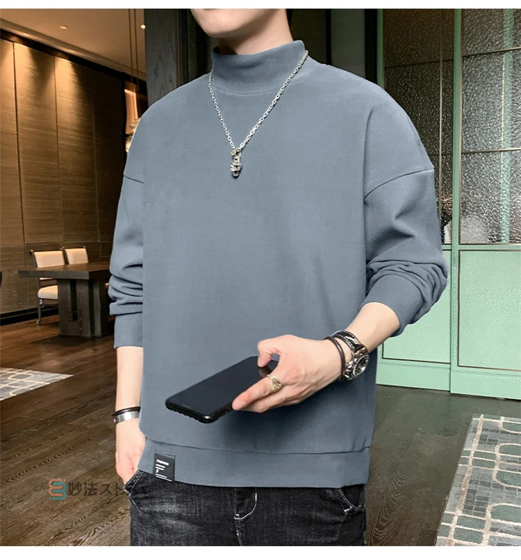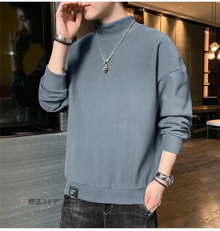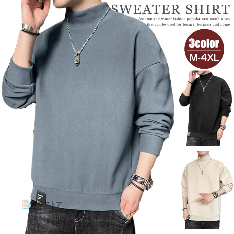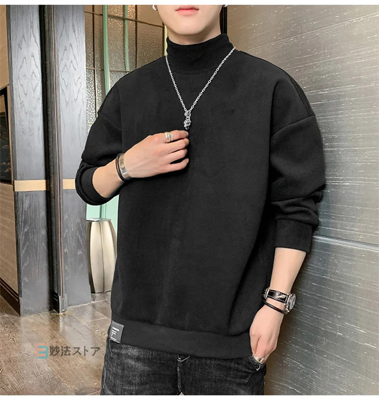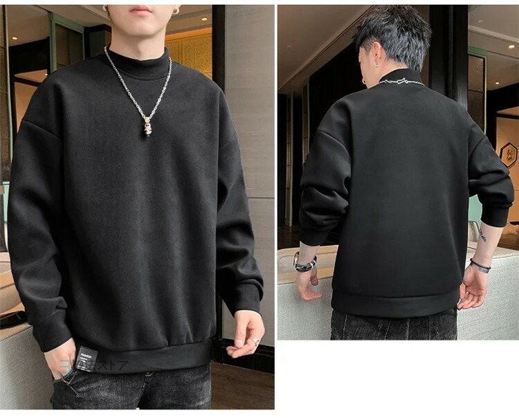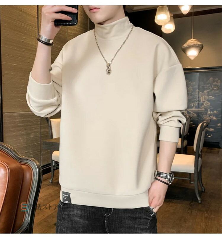 トレーナー メンズ モックネック 薄起 メンズファッション 続々入荷中 M L XL 2XL 3XL 4XL 黒 ベージュ サックス