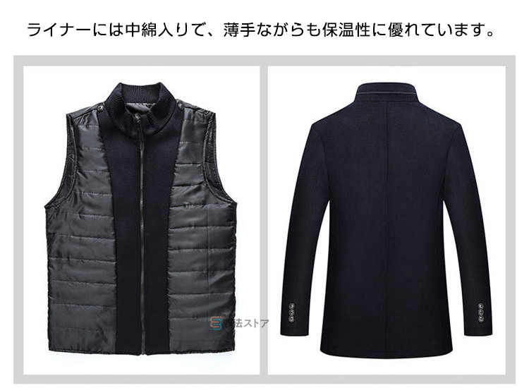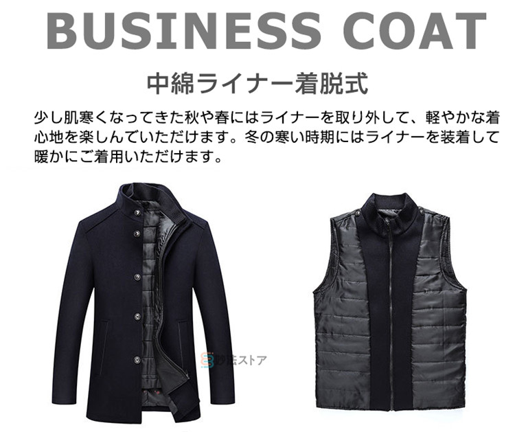 ライナー付き コート メンズ ビジネス コート ジャケット 新作 M L XL 2XL 3XL ネイビー グレー キャメル