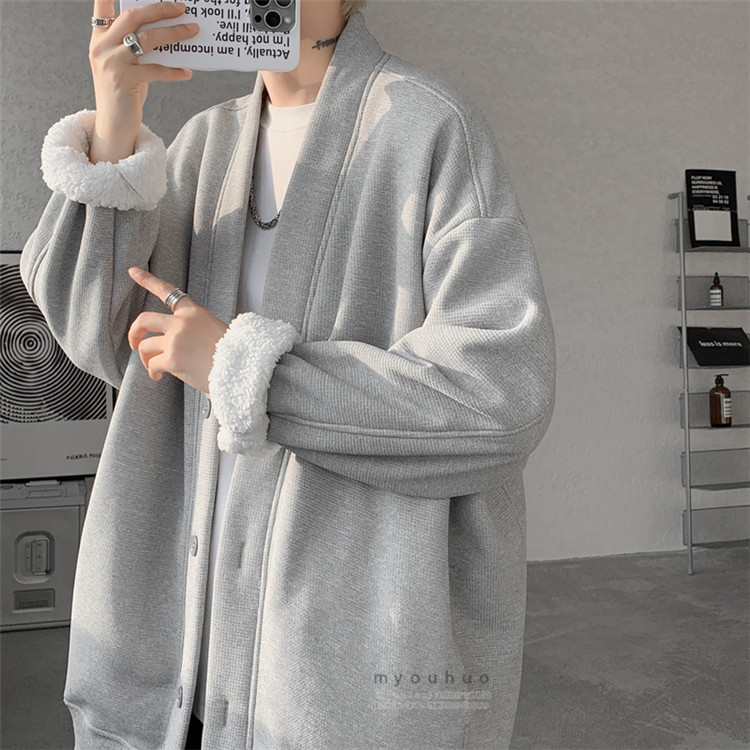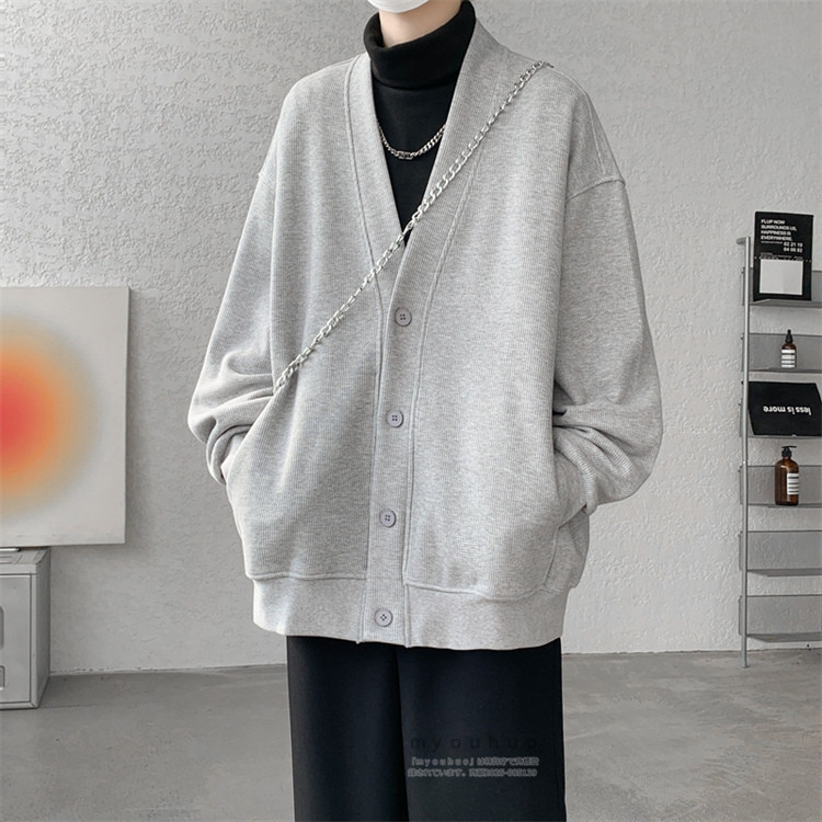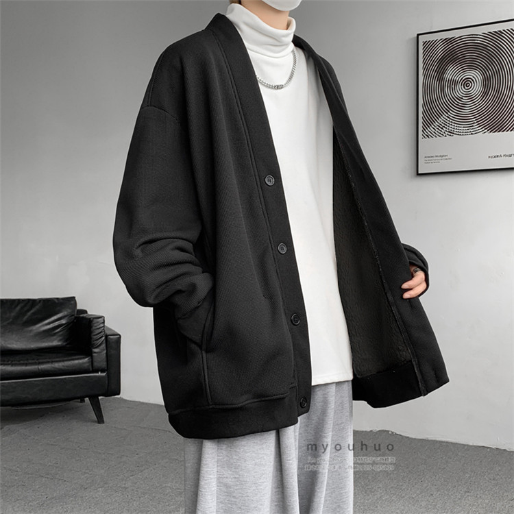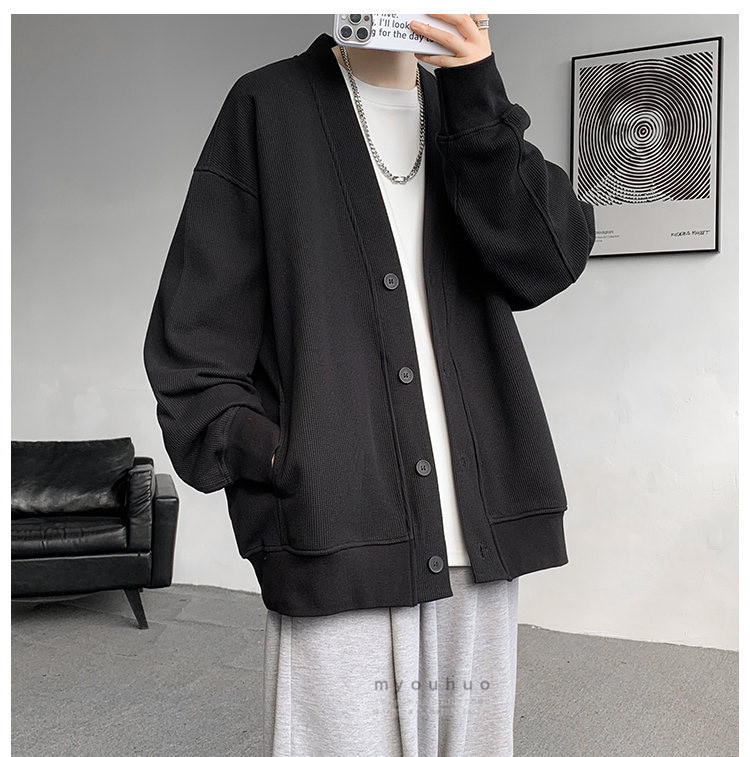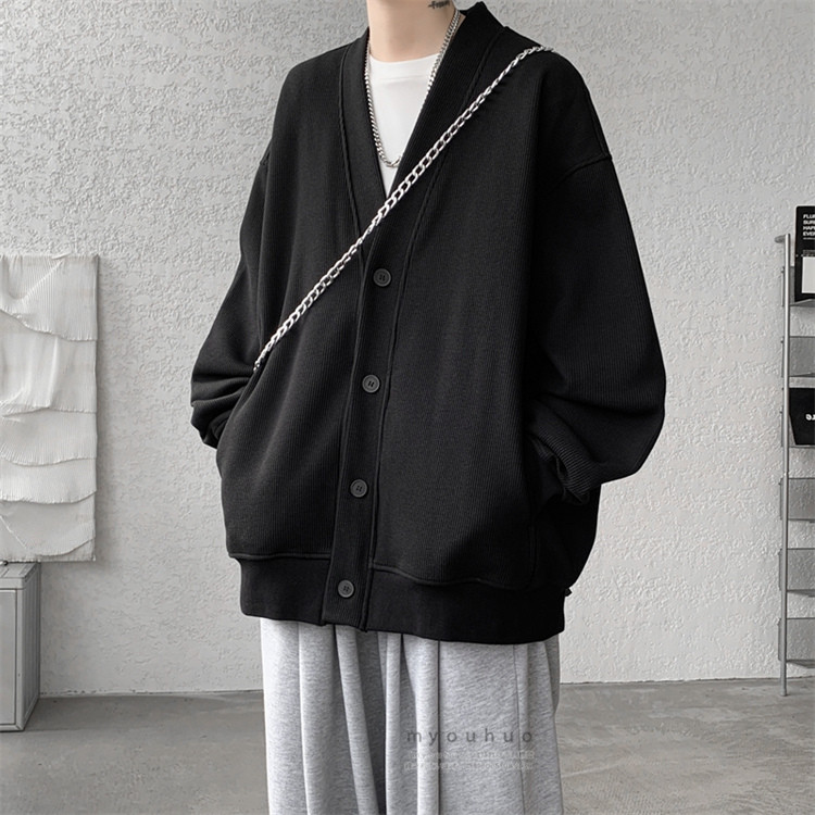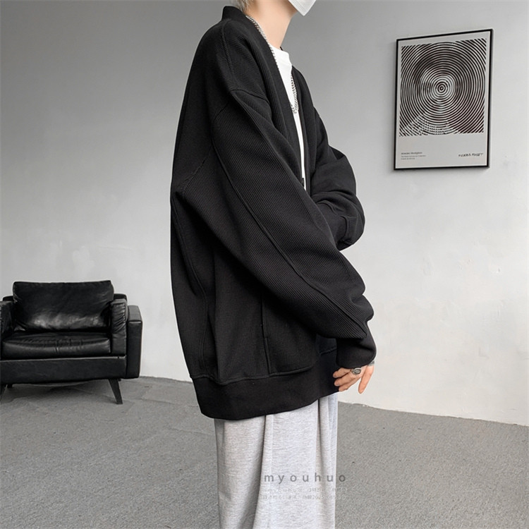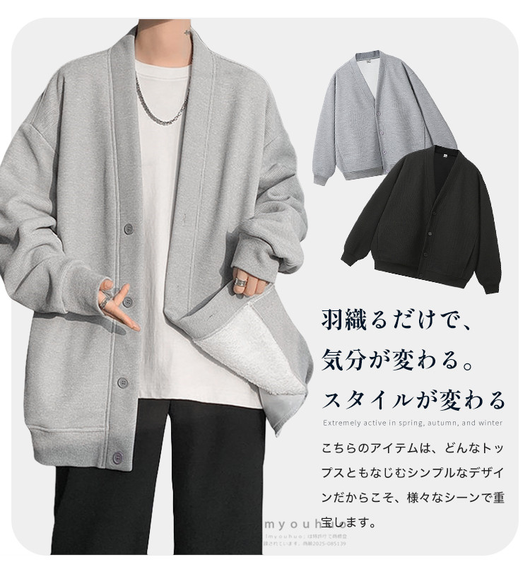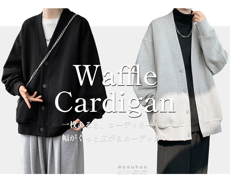 ワッフルカーディガン メンズ 前開き メンズファッション 新作 M L XL 2XL 3XL 4XL 5XL 6XL 7XL 黒 グレー 裏起毛/黒 裏起毛/グレー