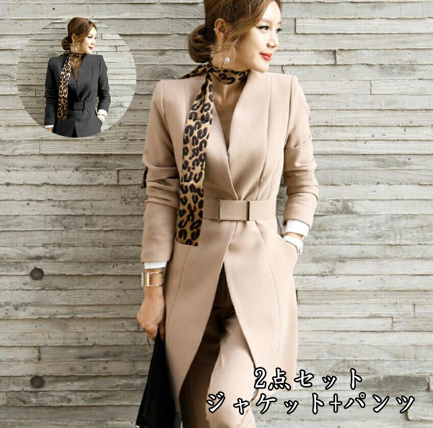 レディーススーツ 2点セットスーツ ジ スーツ セットアップ パンツスーツ 特集 ブラック(ジャケット+パンツ) カーキ(ジャケット+パンツ) S M L XL