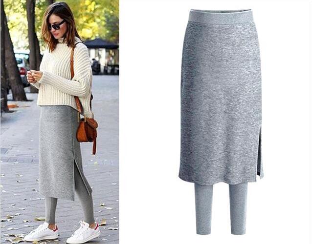 スカート付きレギンス スリットスカート ボトムス パンツ 続々登場 ライトグレー春秋 ブラック春秋 ダークグレー春秋 ライトグレー裏起毛 ブラック裏起毛 ダークグレー裏起毛 M L XL XXL XXXL XXXXL