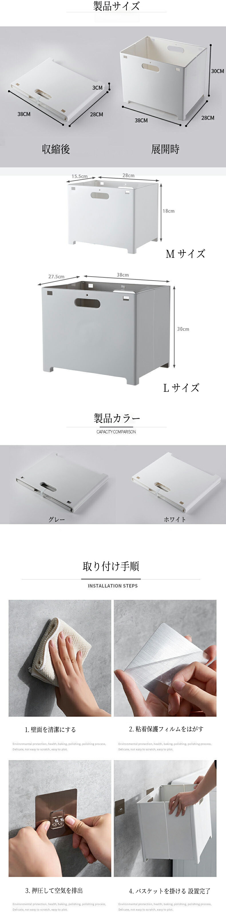 ランドリーバスケット 折りたたみ 壁掛 ホワイト グレー M サイズ L サイズ