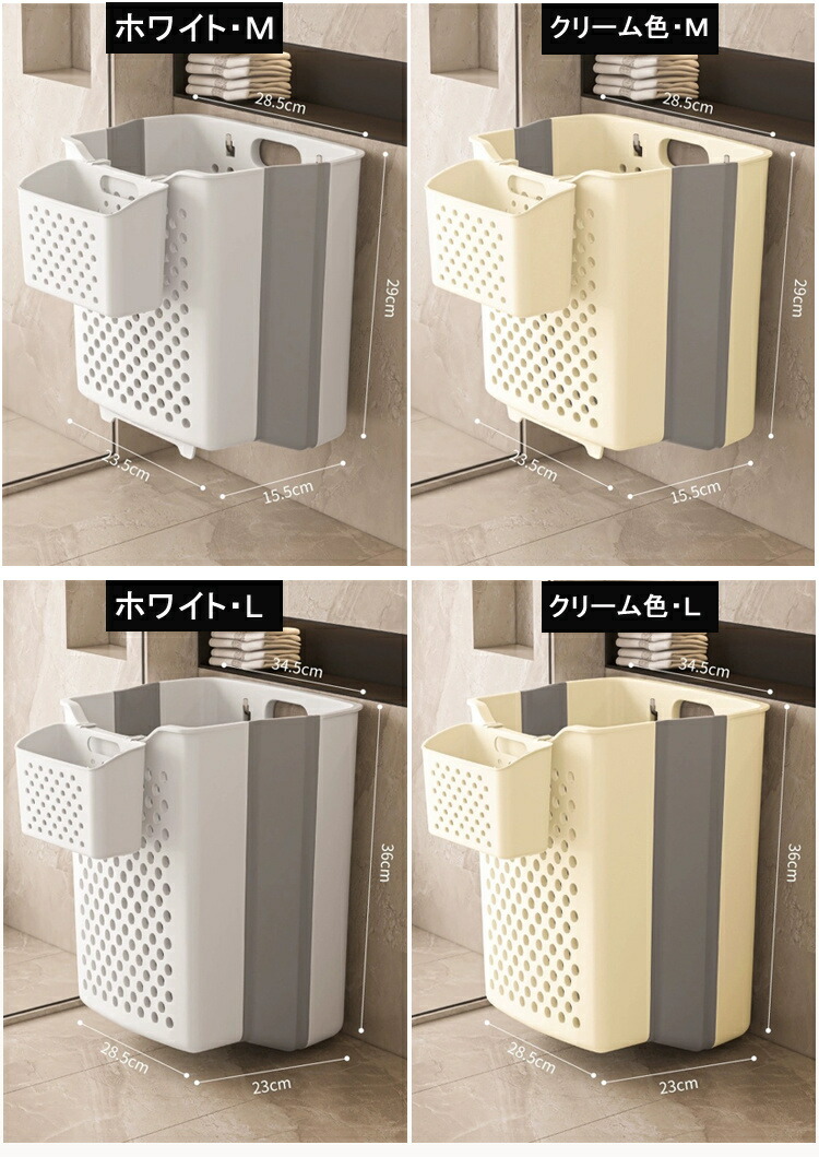 ランドリーバスケット 折り畳み 洗濯か ホワイト クリーム色 Mサイズ Lサイズ