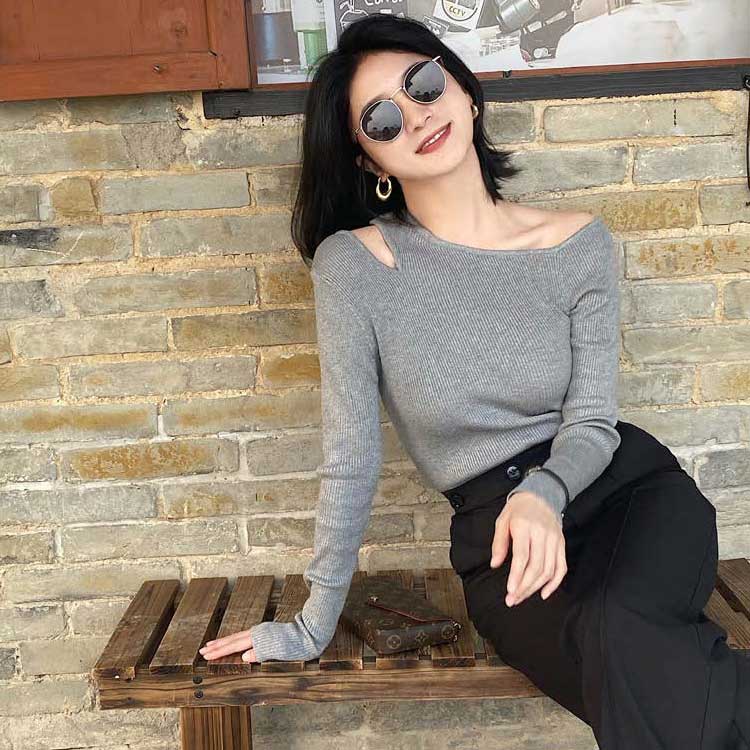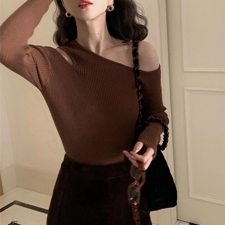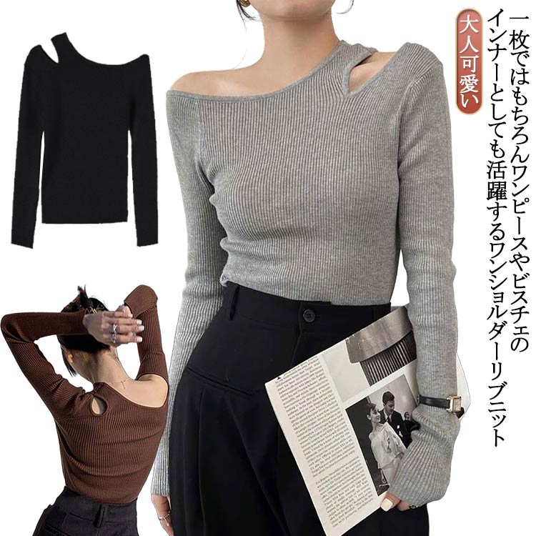 ニット オフショル トップス レディー レディースファッション 通販 黒 灰 コーヒー