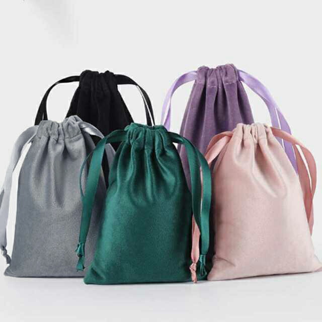 巾着袋 ベロア ブラック ポーチ 2枚 バッグ 小物 ブランド雑貨 人気 ダークグリーン グレー ブラック パープル ピンク 8x10cm-2枚セット 10x15cm-2枚セット 15x21cm-2枚セット 18x26cm-2枚セット 20x30cm-2枚セット 30x40cm-2枚セット 40x50cm-1枚のみ