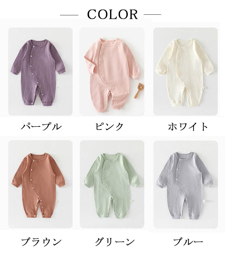 ロンパース 長袖 ベビー服 女の子 男 キッズ ベビー マタニティ 通販 パープル ブルー ピンク ホワイト グリーン ブラウン 59cm 66cm 73cm 80cm 90cm