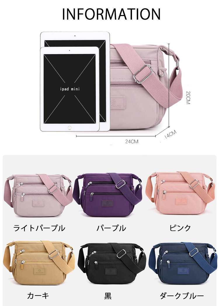 ショルダーバッグ レディース バッグ 多機能 軽量 軽い 無地 シンプル カジュアル 斜め掛け 肩掛け コンパクト カバン かばん マザーズバッグ お出かけ 日常 散歩 旅行 通勤 おしゃれ オ 大人
