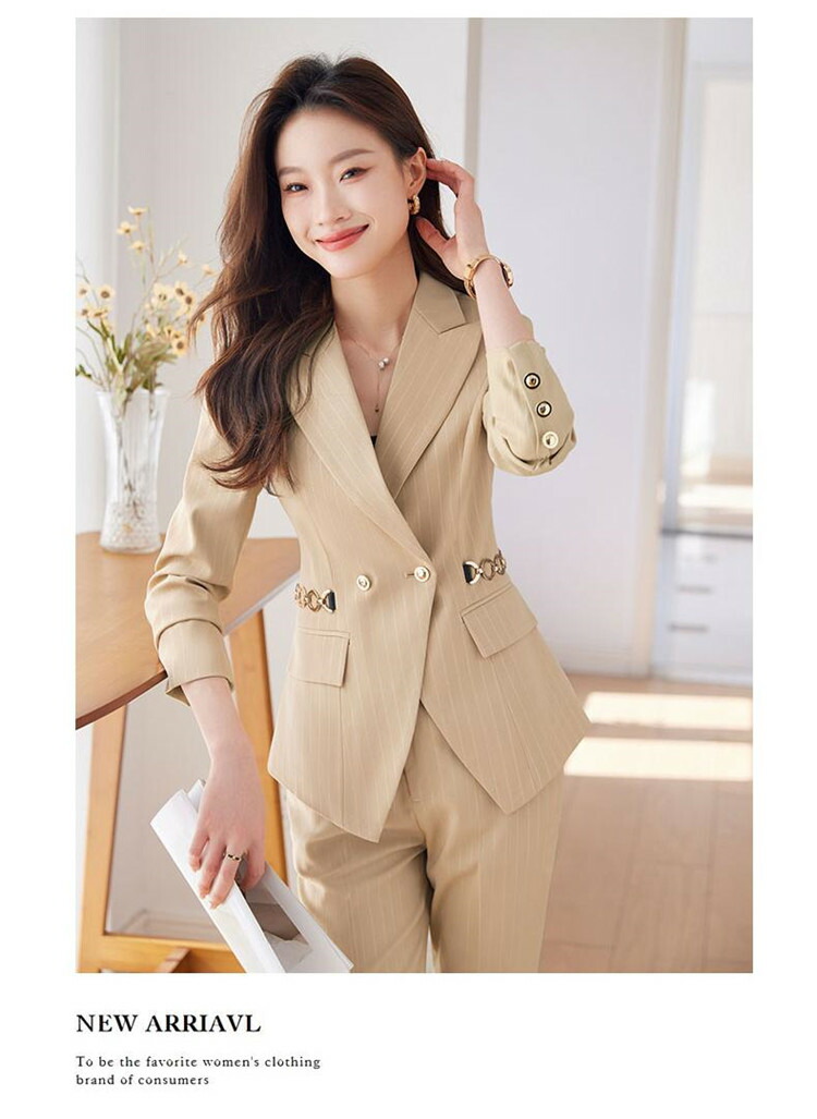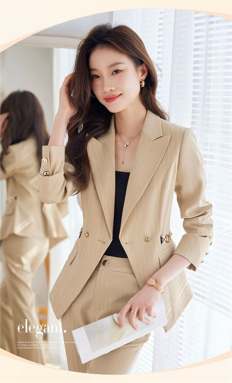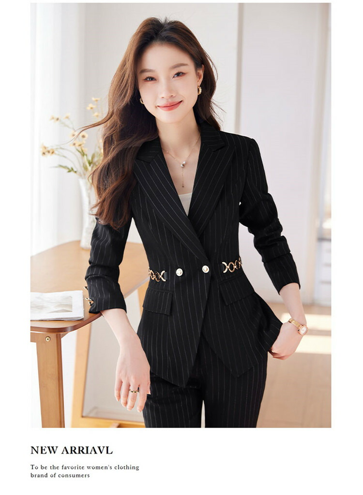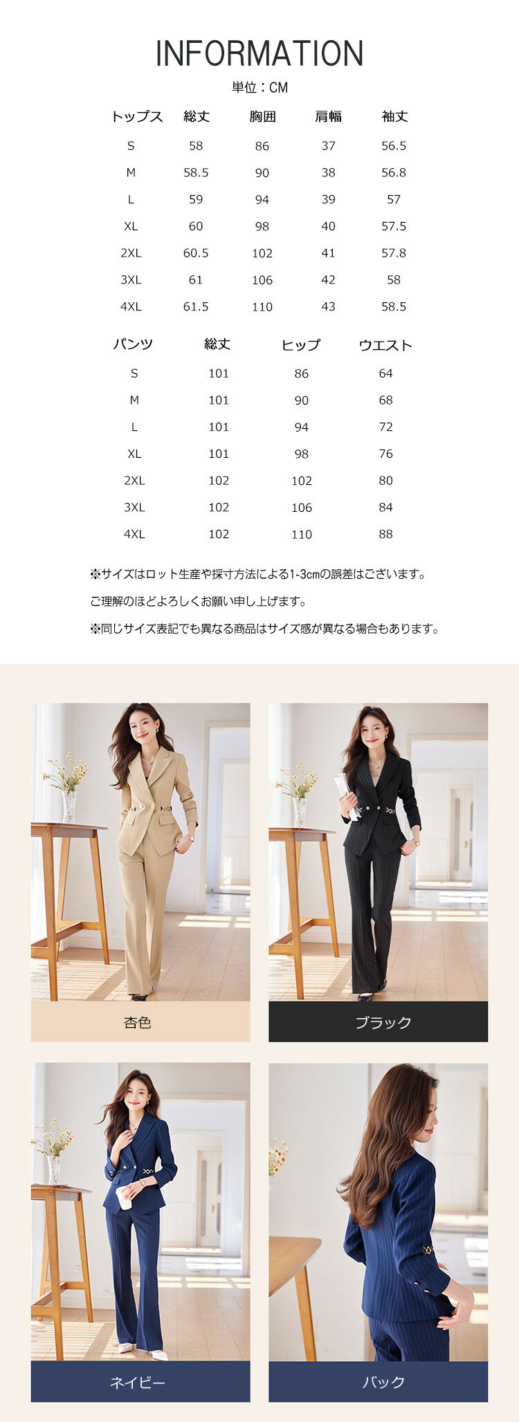 パンツスーツ レディース ストライプ レディースファッション 特集 S M L XL 2XL 3XL 4XL 杏色ジャケット ネイビージャケット ブラックジャケット 杏色セット ネイビーセット ブラックセット
