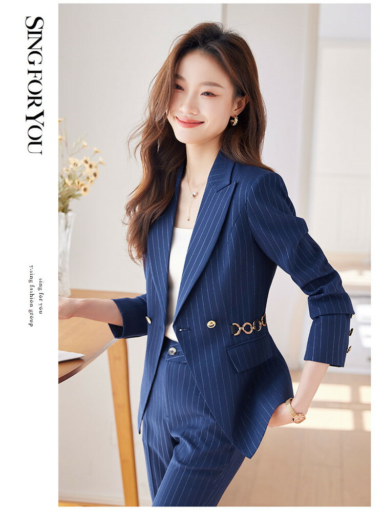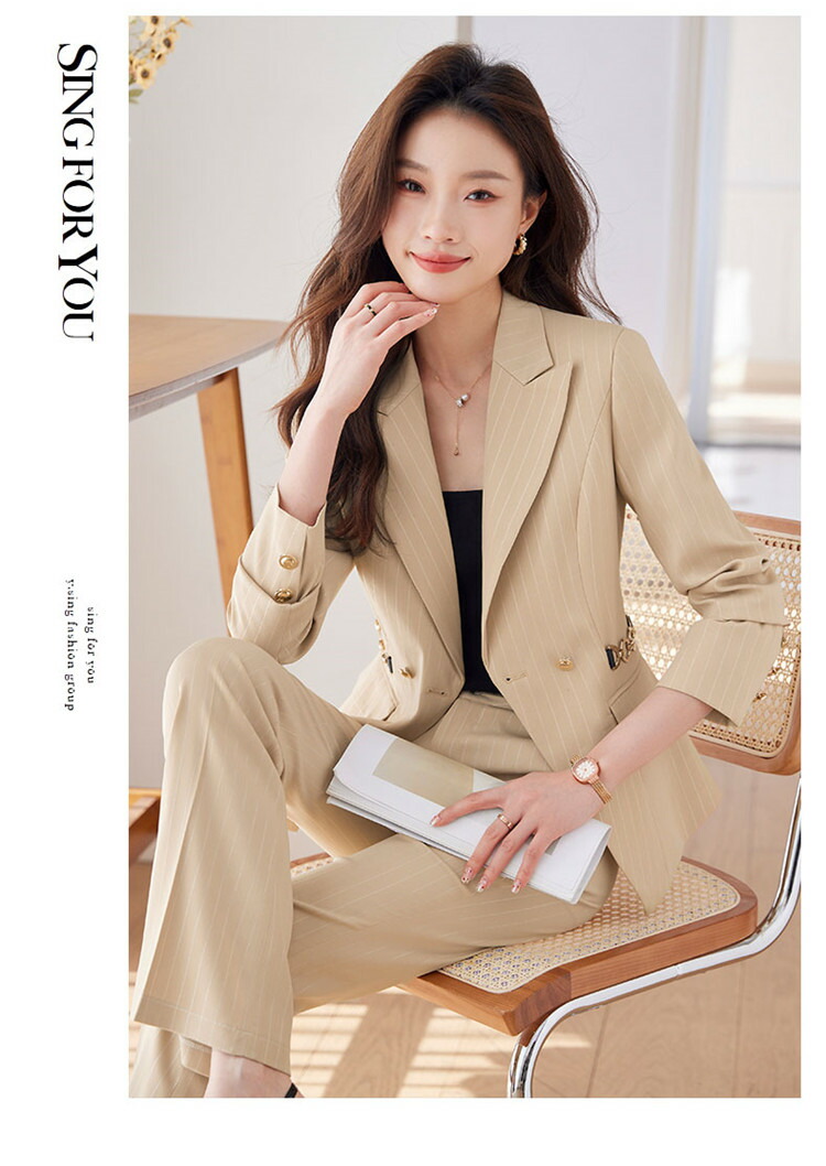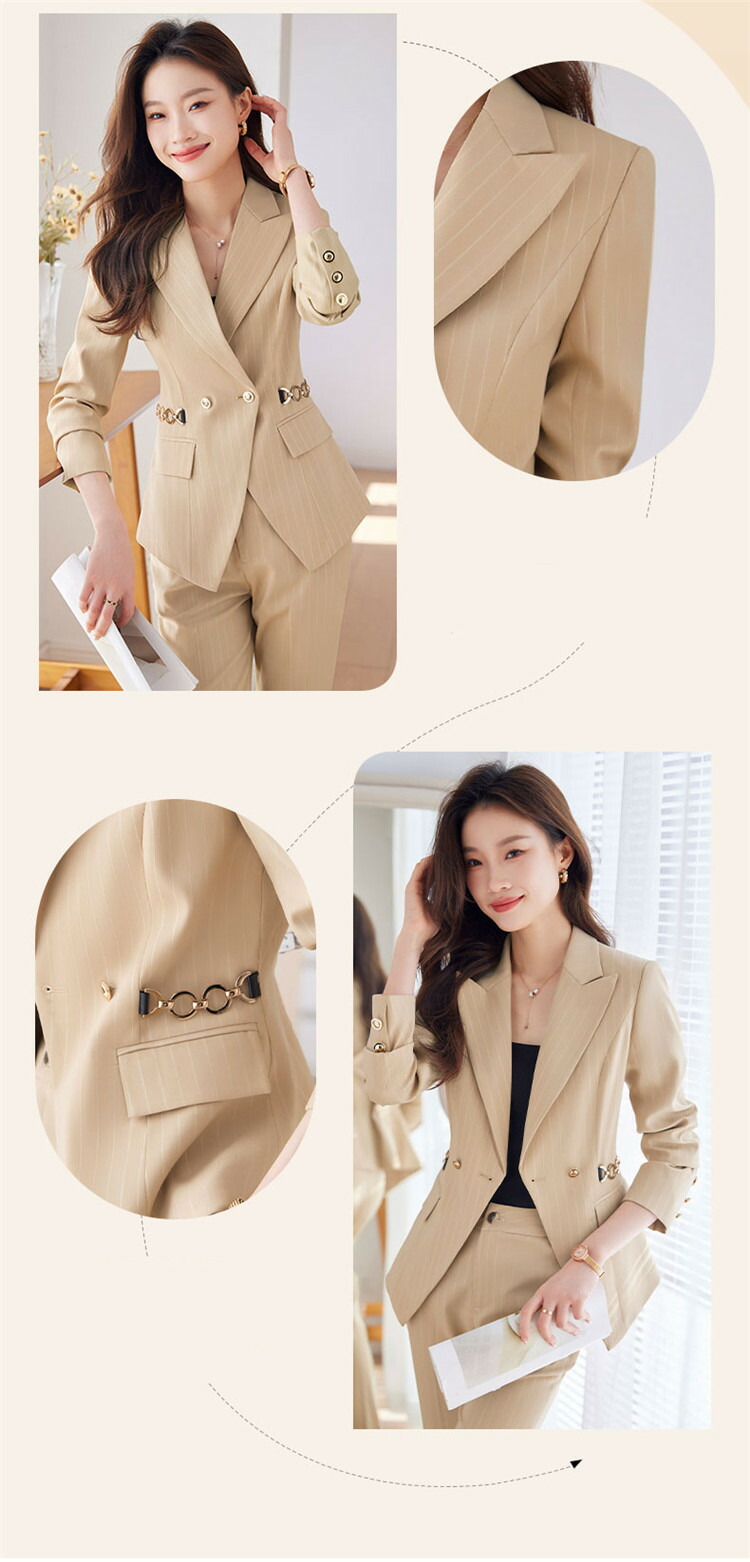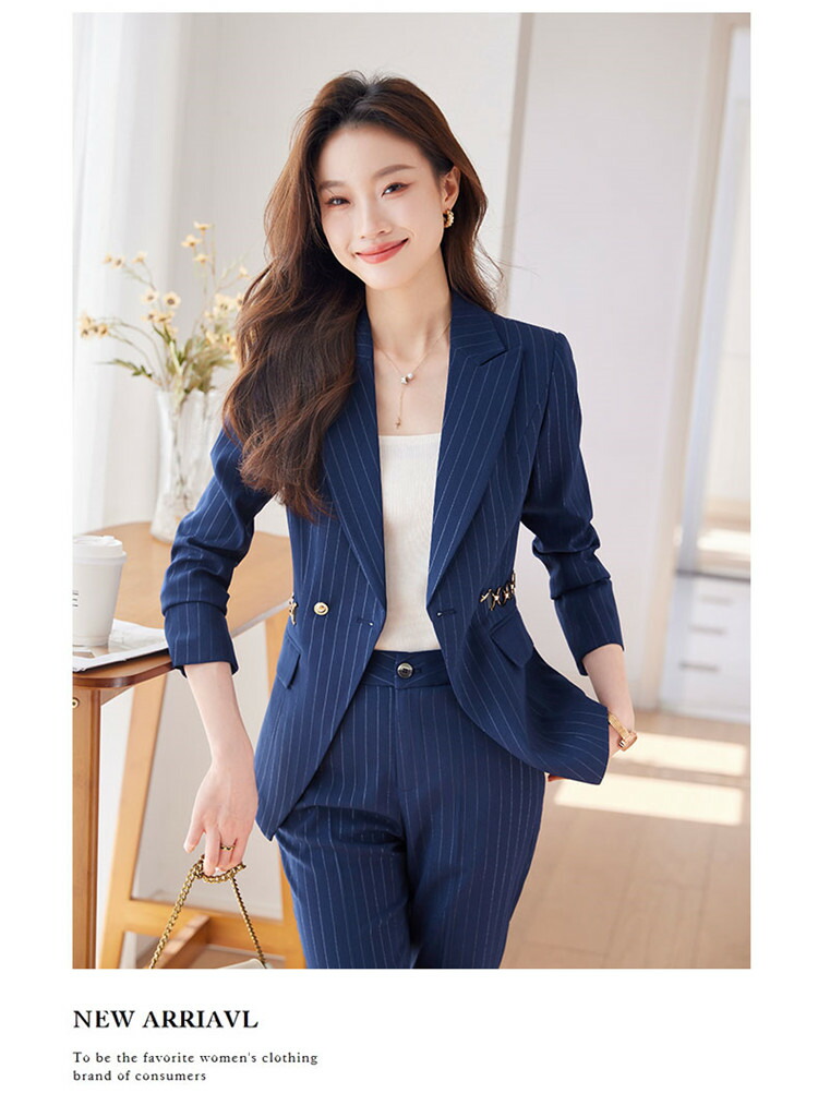 パンツスーツ レディース ストライプ レディースファッション 特集 S M L XL 2XL 3XL 4XL 杏色ジャケット ネイビージャケット ブラックジャケット 杏色セット ネイビーセット ブラックセット
