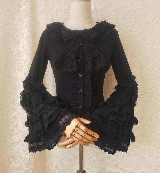 長袖ブラウス レディース ロリータ 春 トップス シャツ ブラウス 続々登場 XS S M L XL 2XL ブラック ホワイト