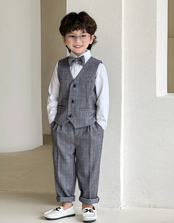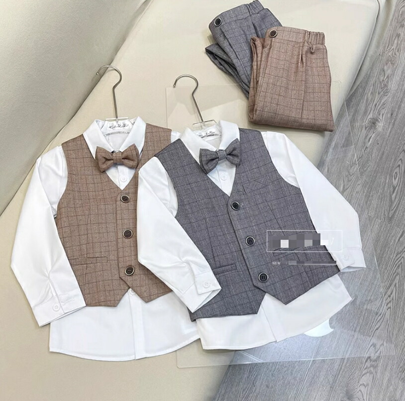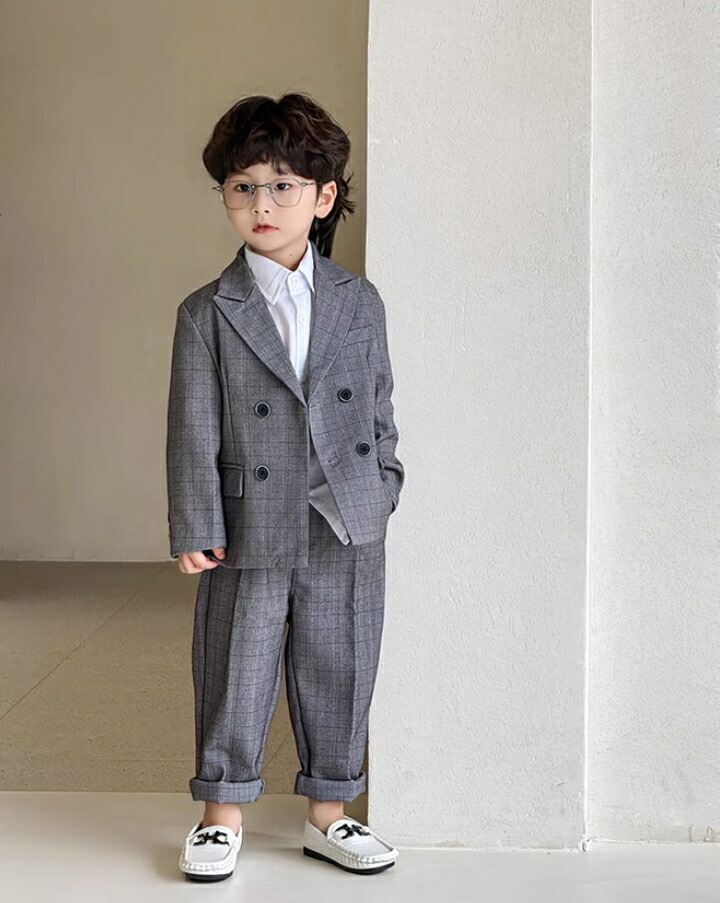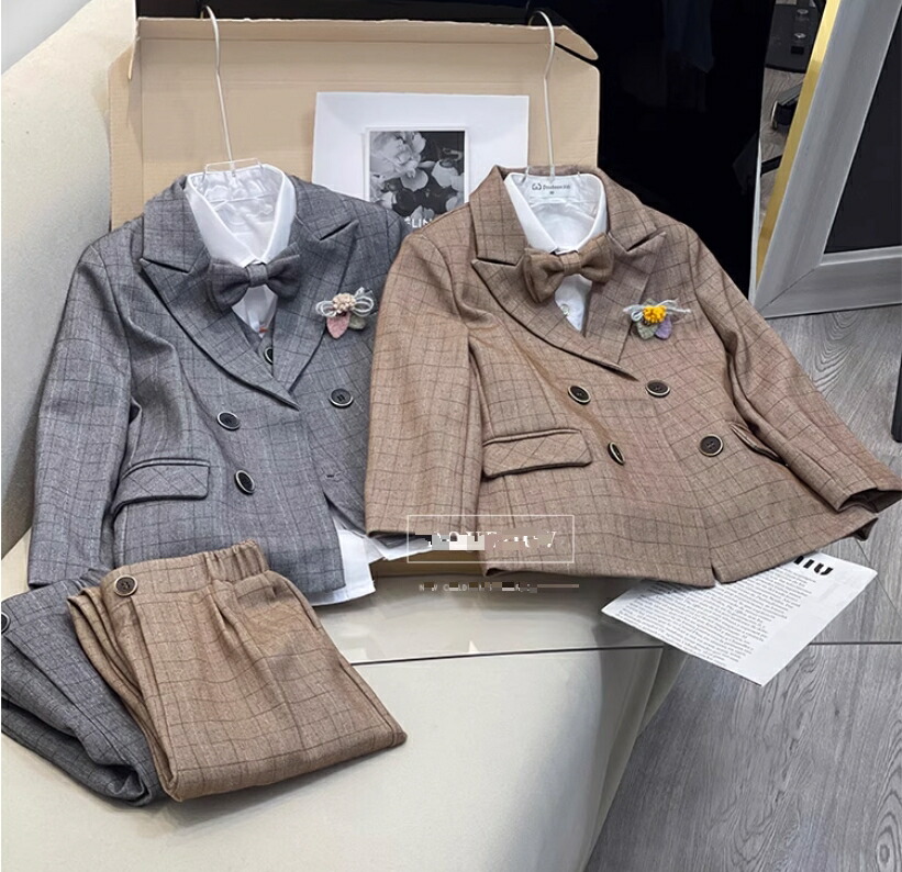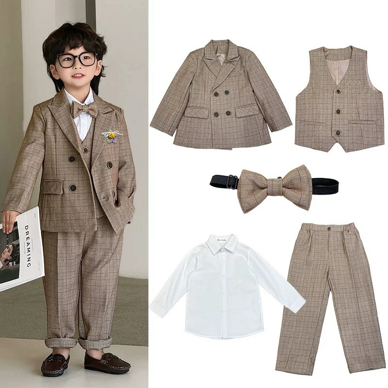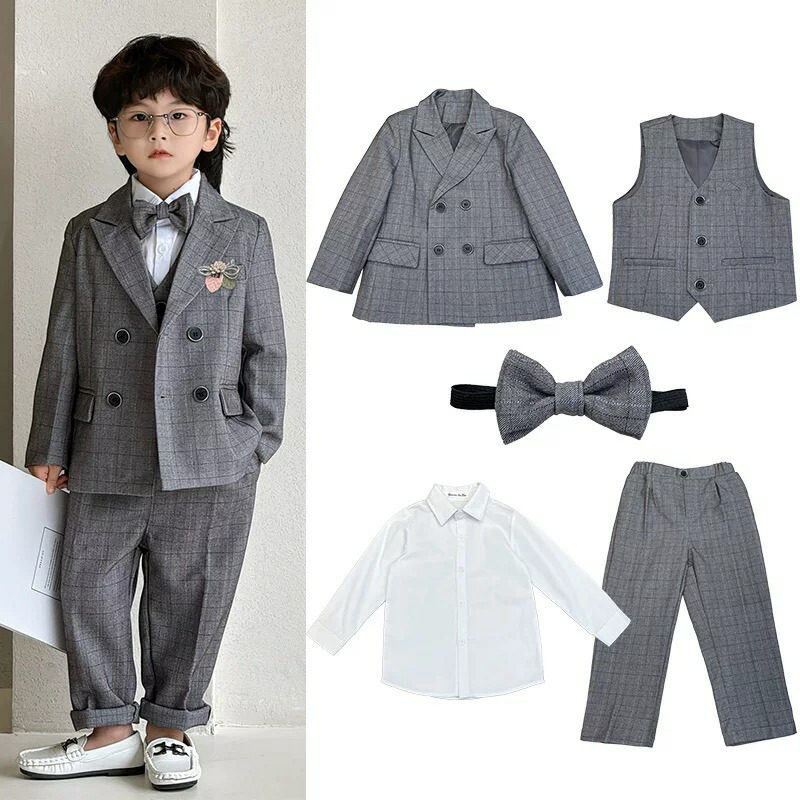 格好いい キッズスーツ 長袖ジャケット キッズ スーツ カジュアルセットアップ スーツ 豊富 カーキ-4点セット カーキ-5点セット グレー-4点セット グレー-5点セット 80 90 100 110 120 130 140 150