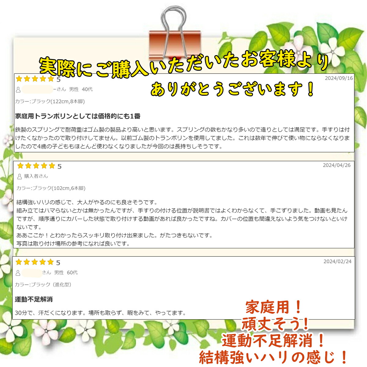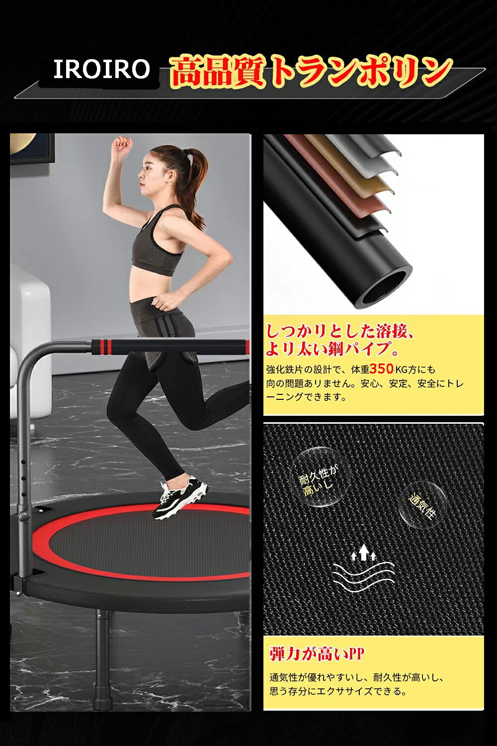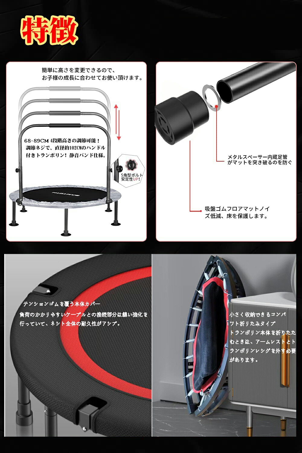 トランポリン 手すり付き 大型102c ブラック(102cm,6本脚) ブラック(122cm,8本脚)