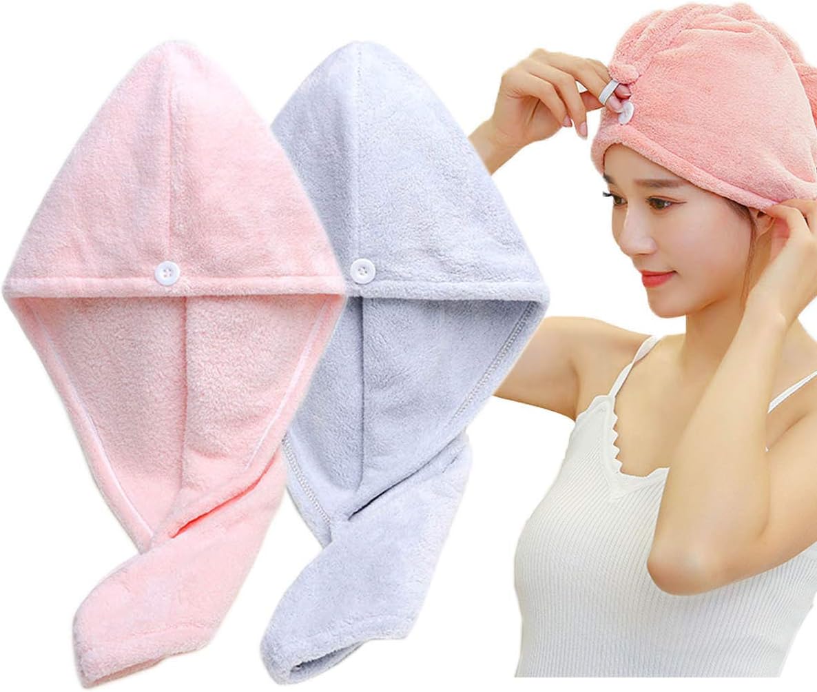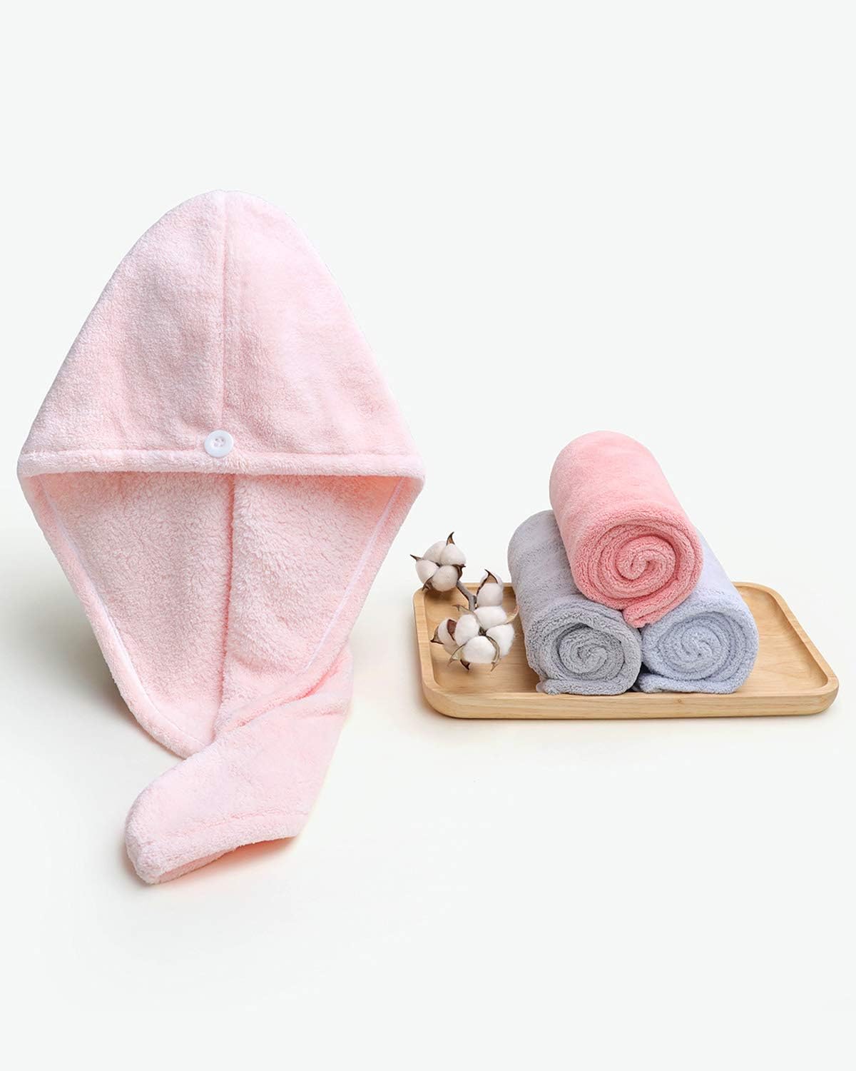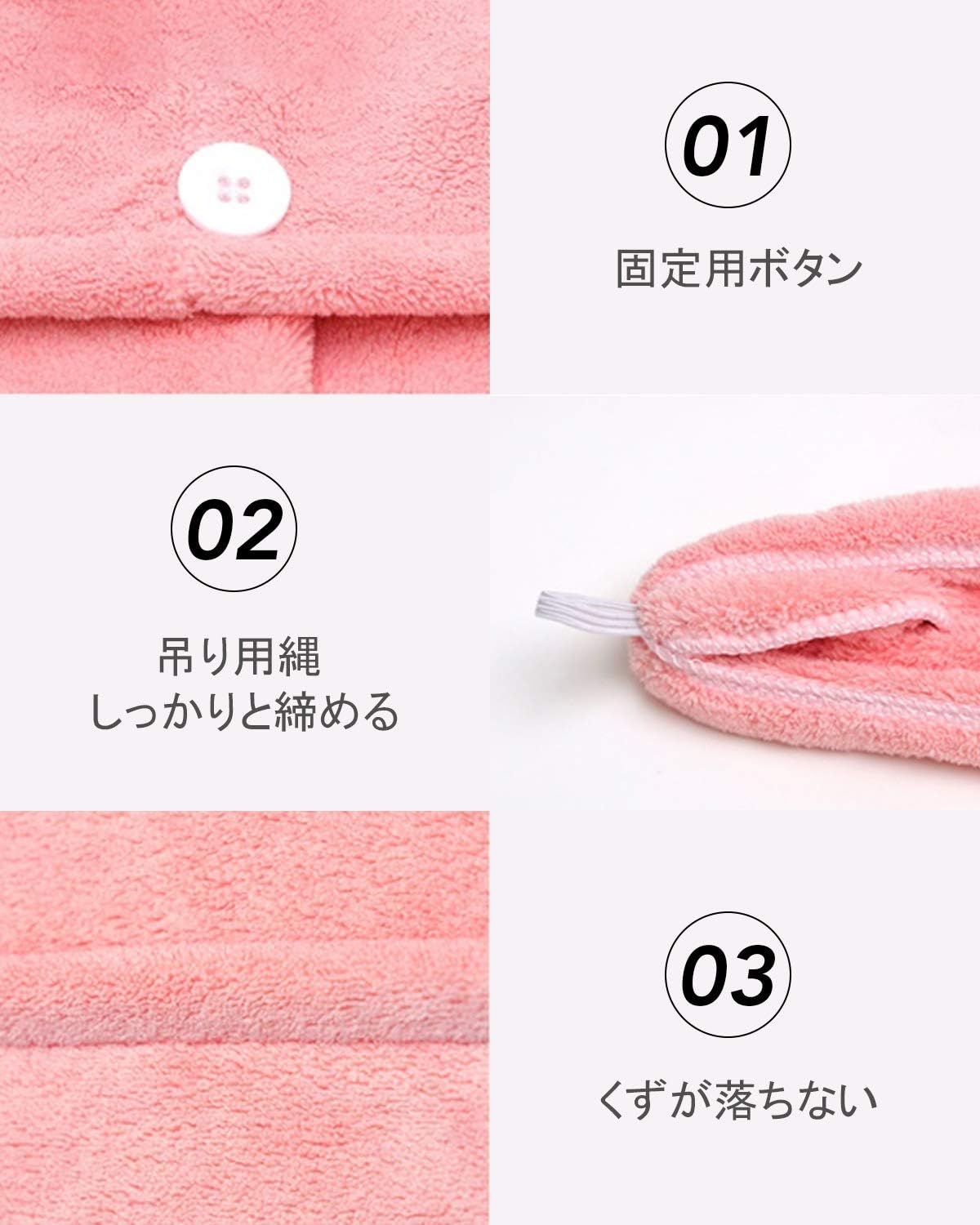 ヘアドライタオル ドライキャップ 速乾 ピンク+水色 グレー+頬紅赤