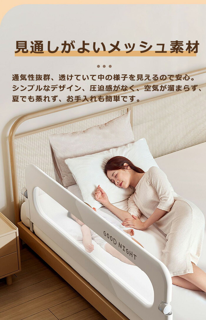 ベッドフェンスは肌に優しい耐摩耗性の素材を採用
