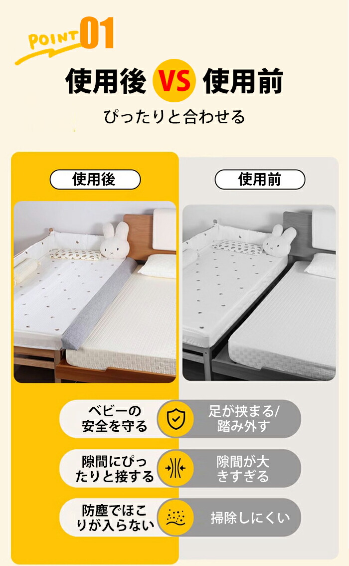 検索キーワード:すきまパッド ベッド用 マットレス 敷布団 隙間パッド ベッド マットレスバンド すきま埋める すきま防止 ベッド連結 継ぎ足し 隙間クッション スペーサー 隙間対策 高低ベッド用 軽量 カバー取り外し 水洗 広幅 マットレス連結 子供 ベッド小物 子供旅行用 家庭用 赤ちゃん 子供 子ども 添い寝 蹴り出し 幼児用 出産祝い 取付簡単