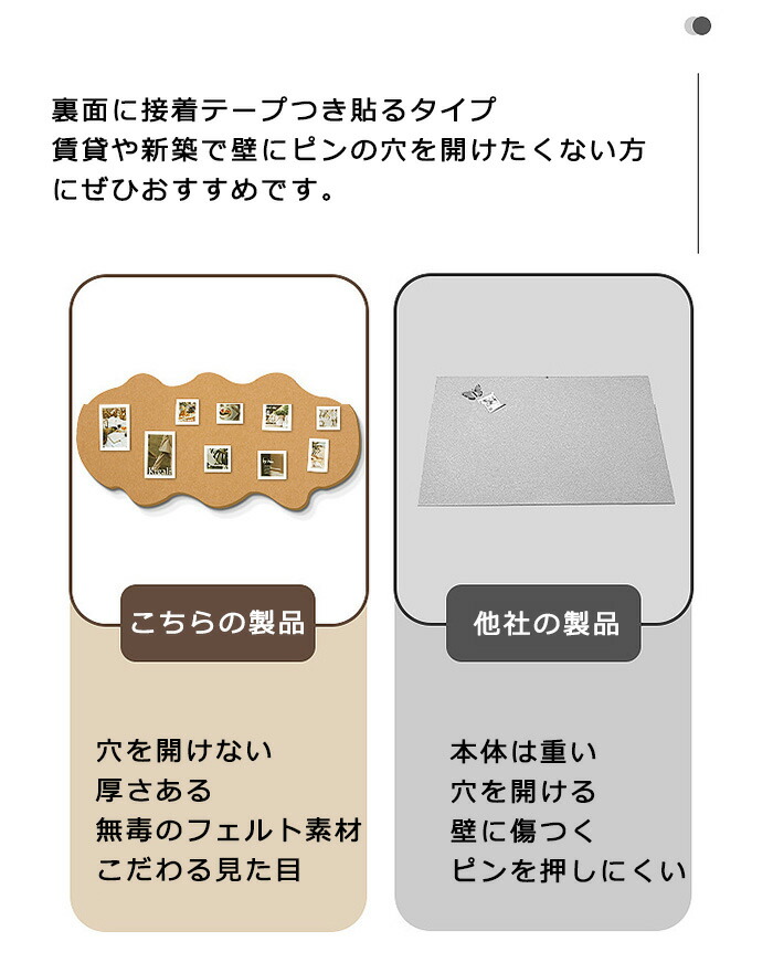 コルクボード 写真 穴不要 画鋲付 サイズオーダー ボード 掲示板 フォトフレーム フェルト DIY ウェルカムボード 壁貼りフォトフレーム 伝言板 ポスター ハリペタ