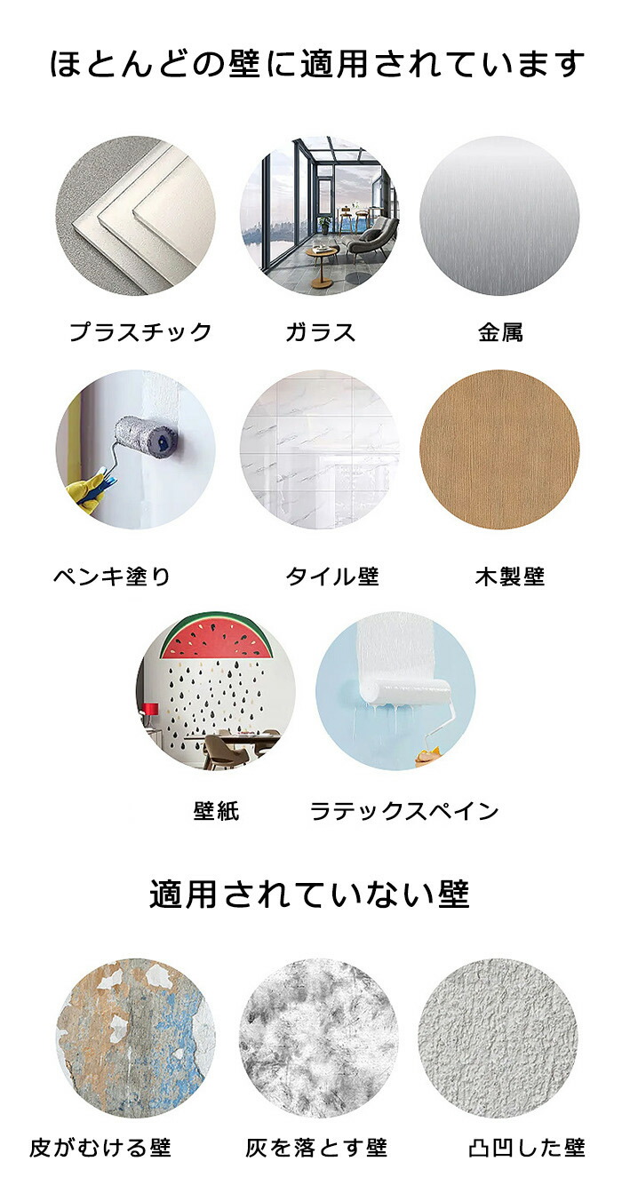 外しても壁に傷をつけません!ほとんどの平らな面