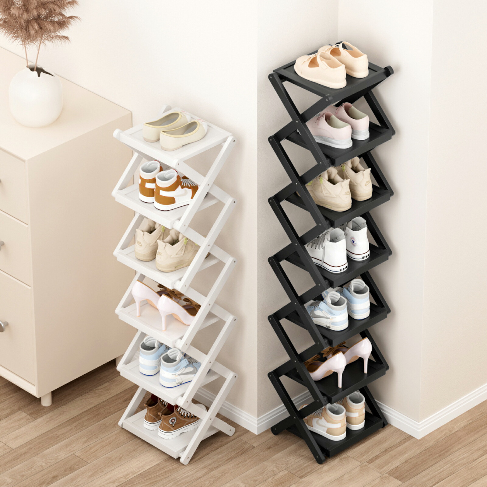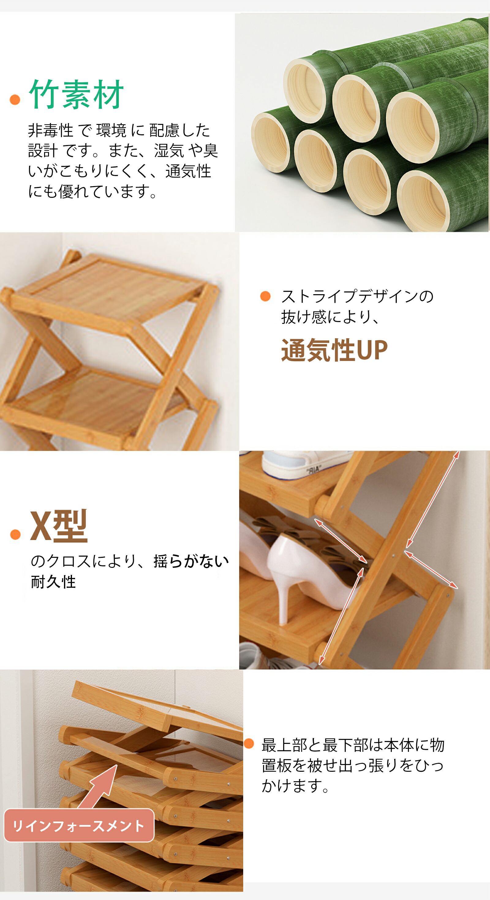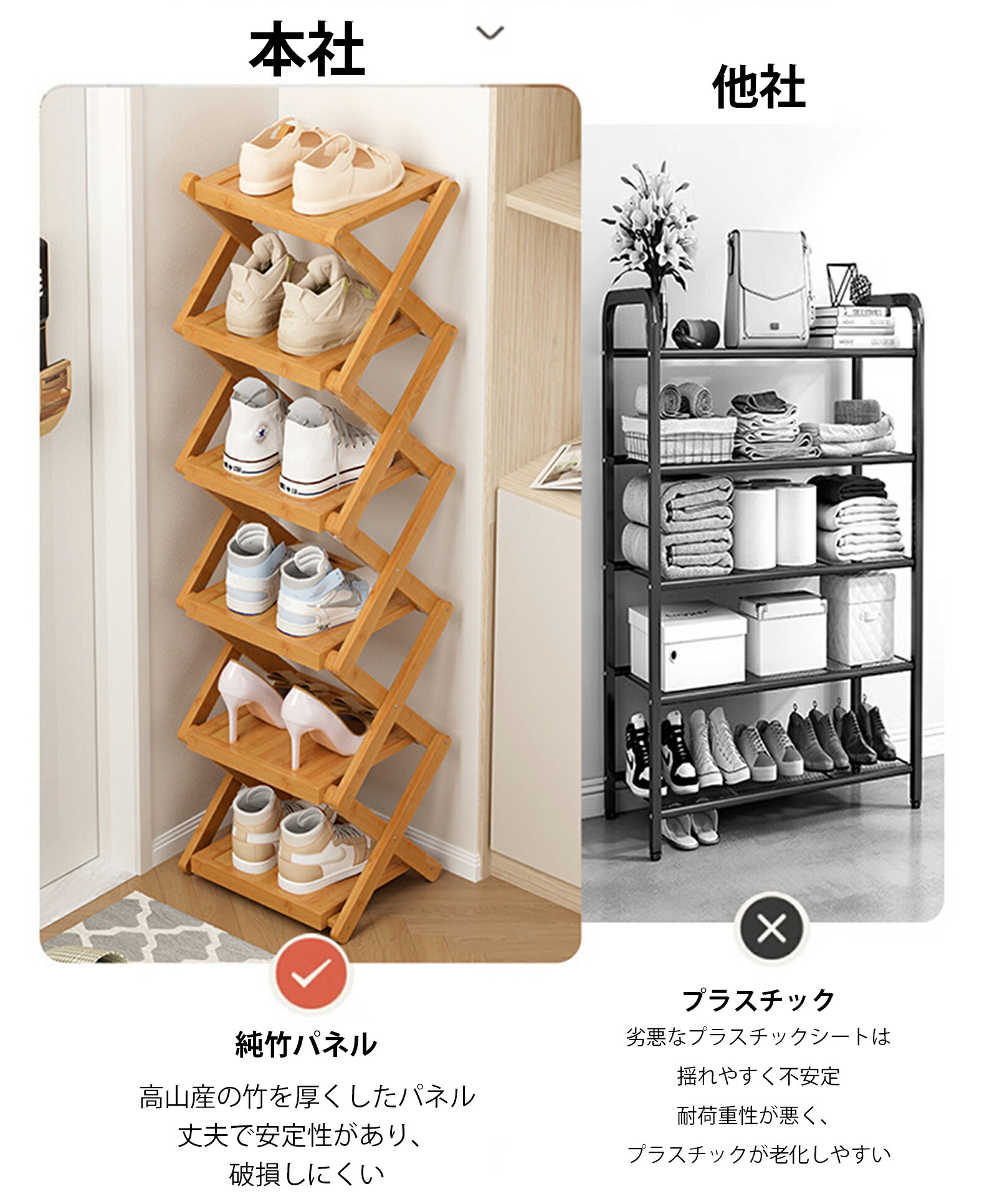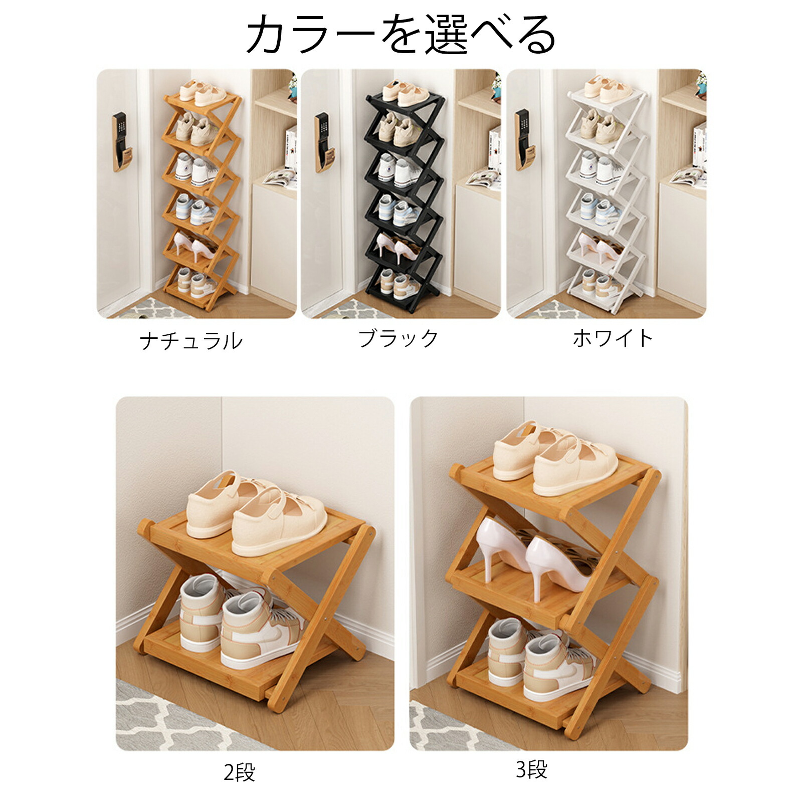 シューズラック スリム 組立不要 靴箱 ナチュラル ブラック ホワイト 2段 3段 4段 5段 6段 7段 8段