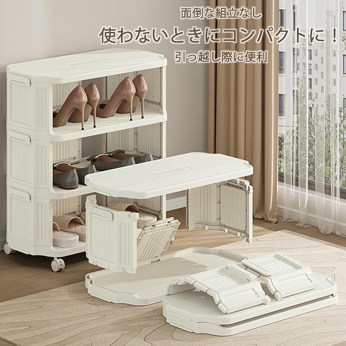 シューズラック スリム キャスター付き 頑丈 おしゃれ 靴入れ 靴 4段 5段 6段 7段収納 強い耐荷重 組立簡単 工具不要 多層 ホワイト 省スペース 一人暮らし 大容量