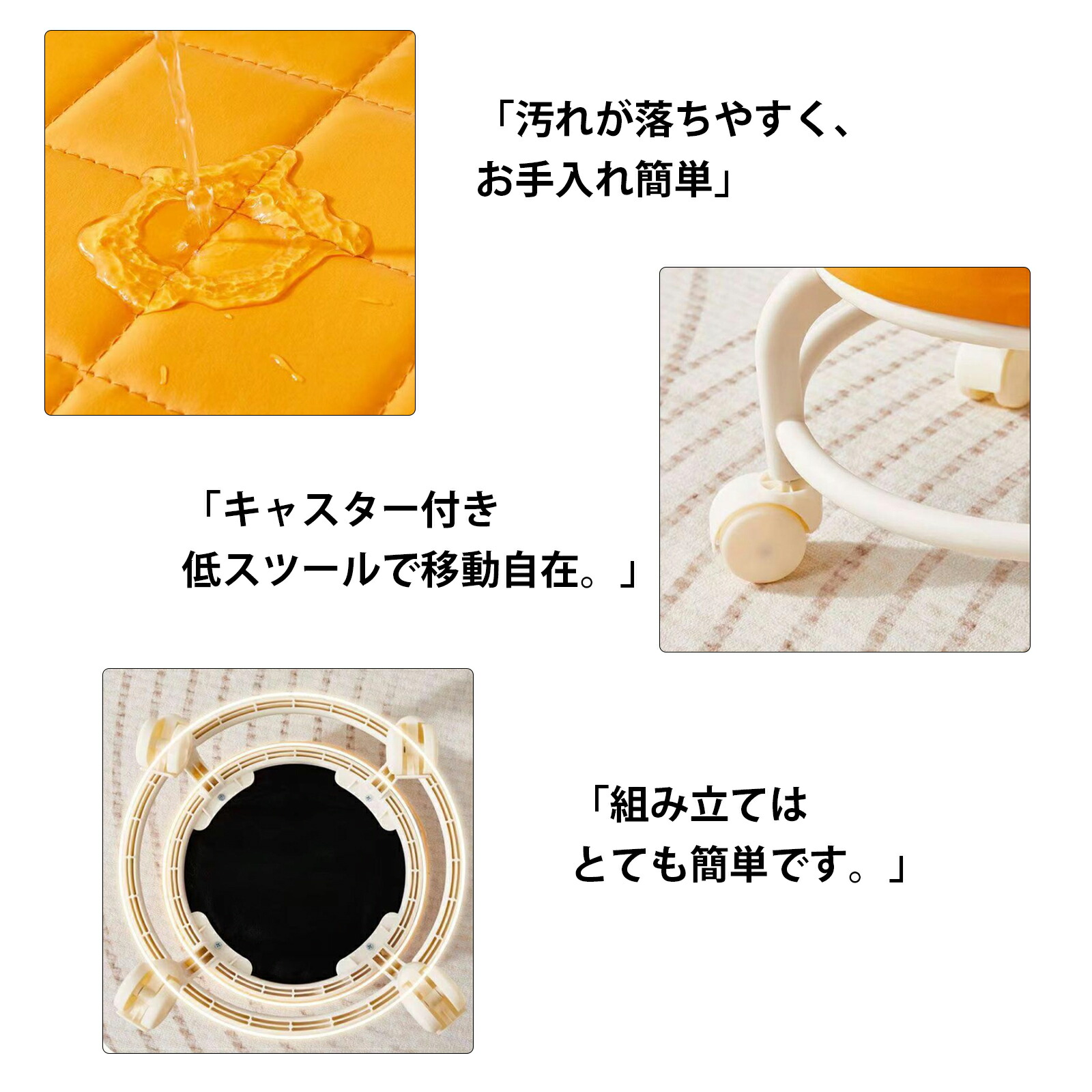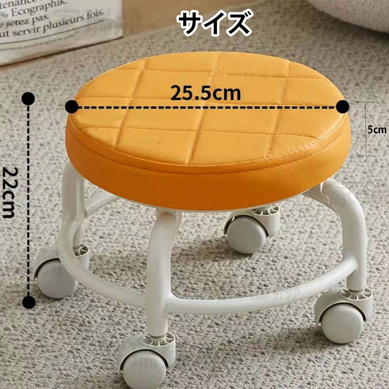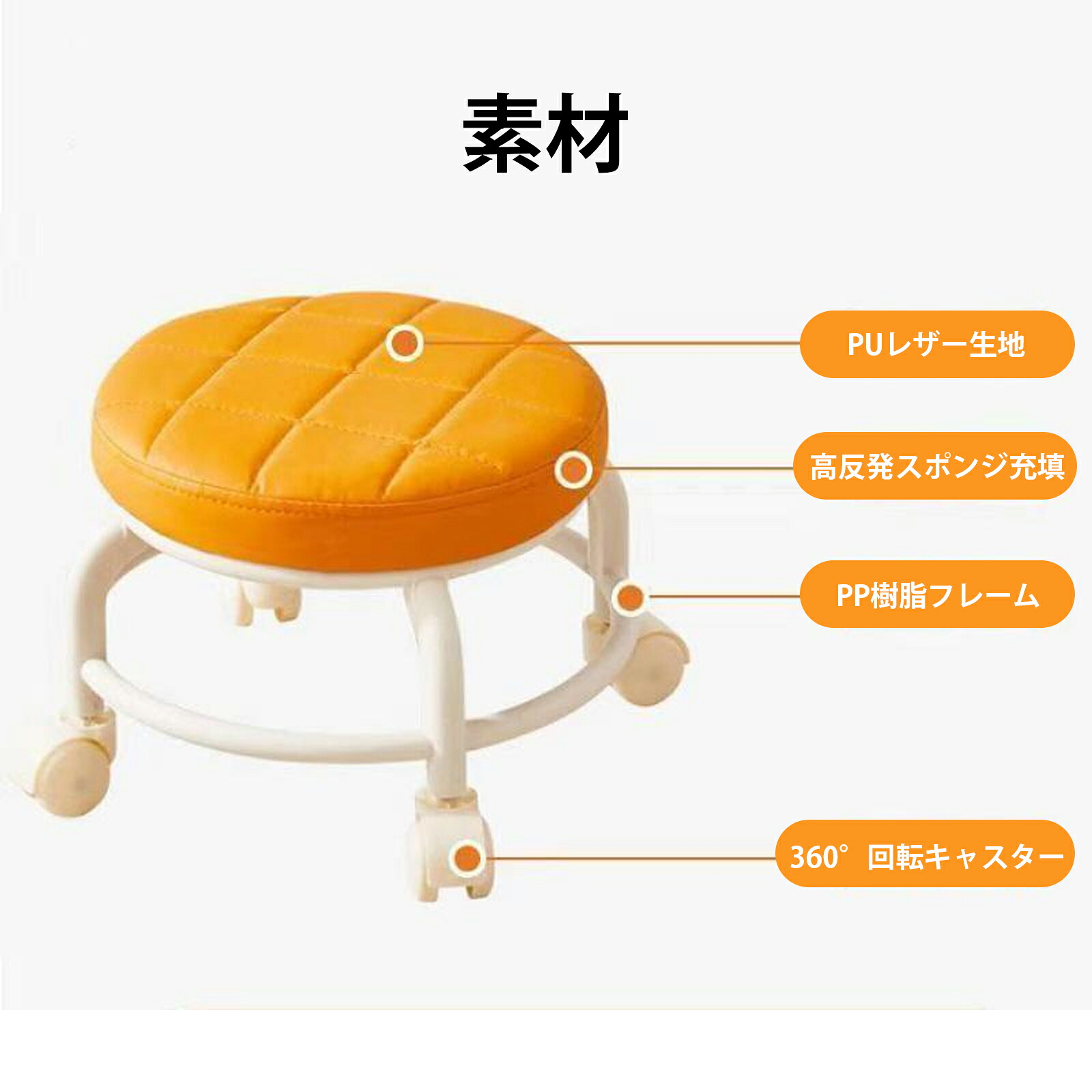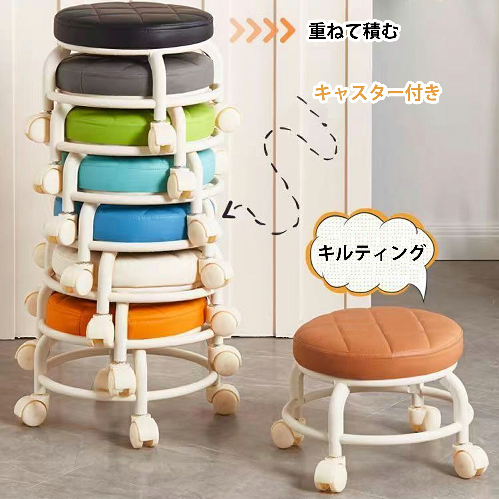 ロースツール キルティング キャスター レッド グレー ブラック ホワイト オレンジ ピンク イエロー