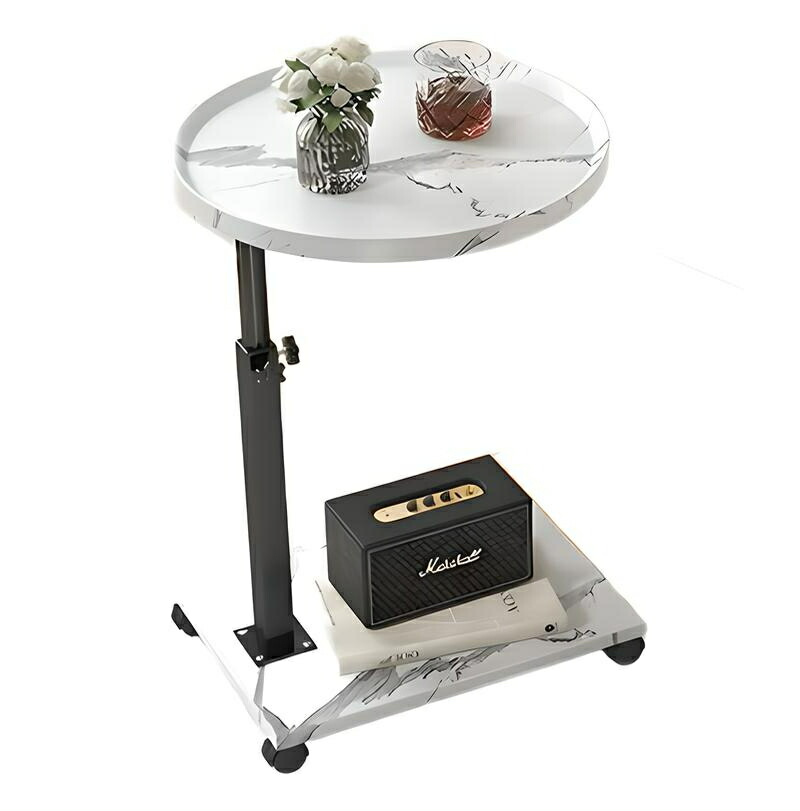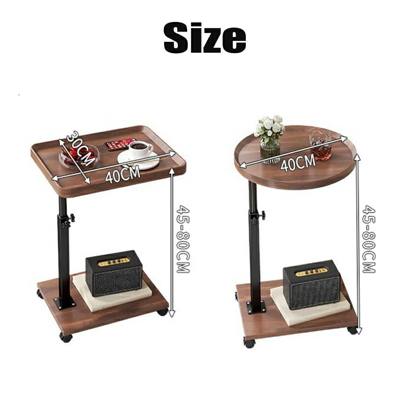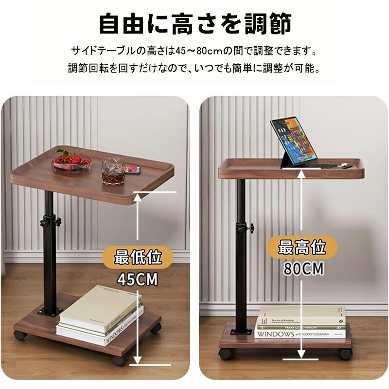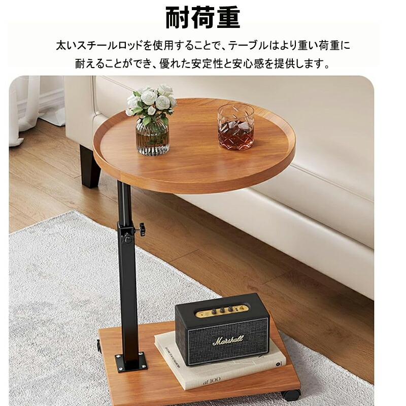 サイドテーブル キャスター付き 昇降式 ナチュラル くるみ色 ホワイト 方形 円形
