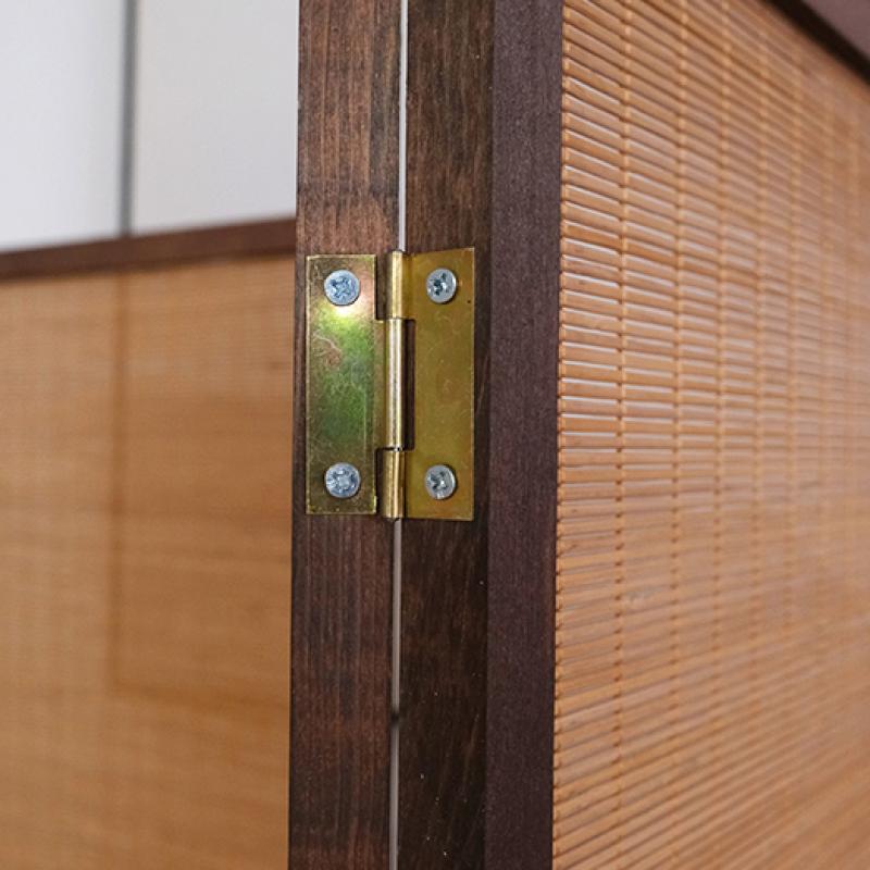 天然木フレームと竹ヒゴ編みの温かみのある風合いが、どんな部屋にも馴染み、素朴で味わい深い空間を演出します。それらは非常に密度が高く、隙間がなく、素朴で本物のように見えます。蝶番が180度回転するのでパーテーションを大きく動かすことなく後ろのものが取り出せます。