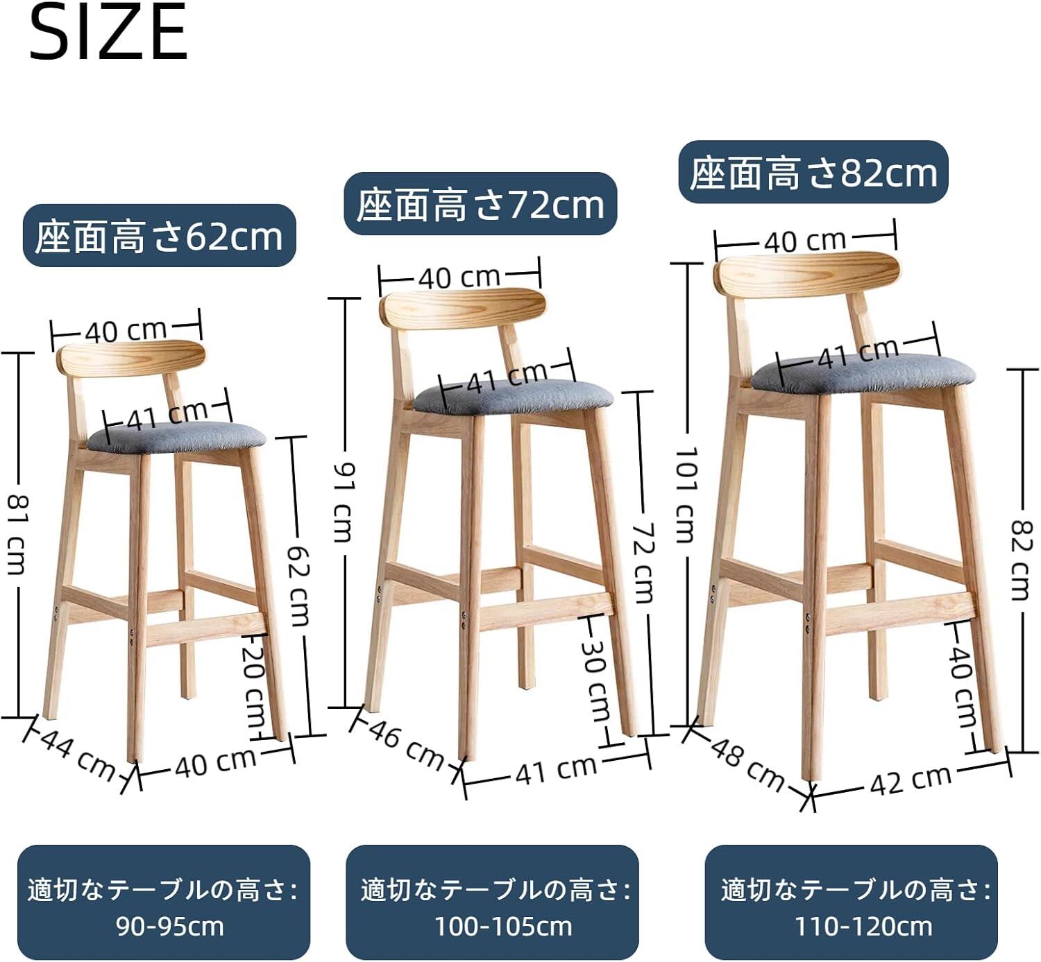 カウンターチェア 木製 背もたれ付き ブルー カーキ グレー グリーン ミントグリーン コーヒー イエロー ライトグレー 62CM 72CM 82CM