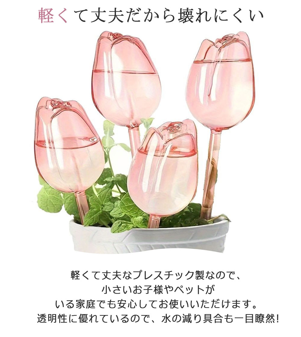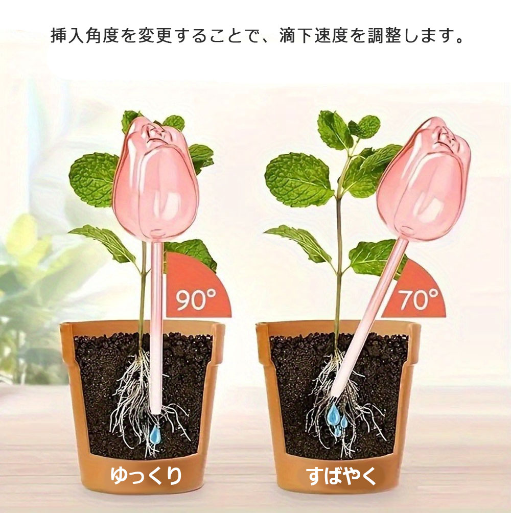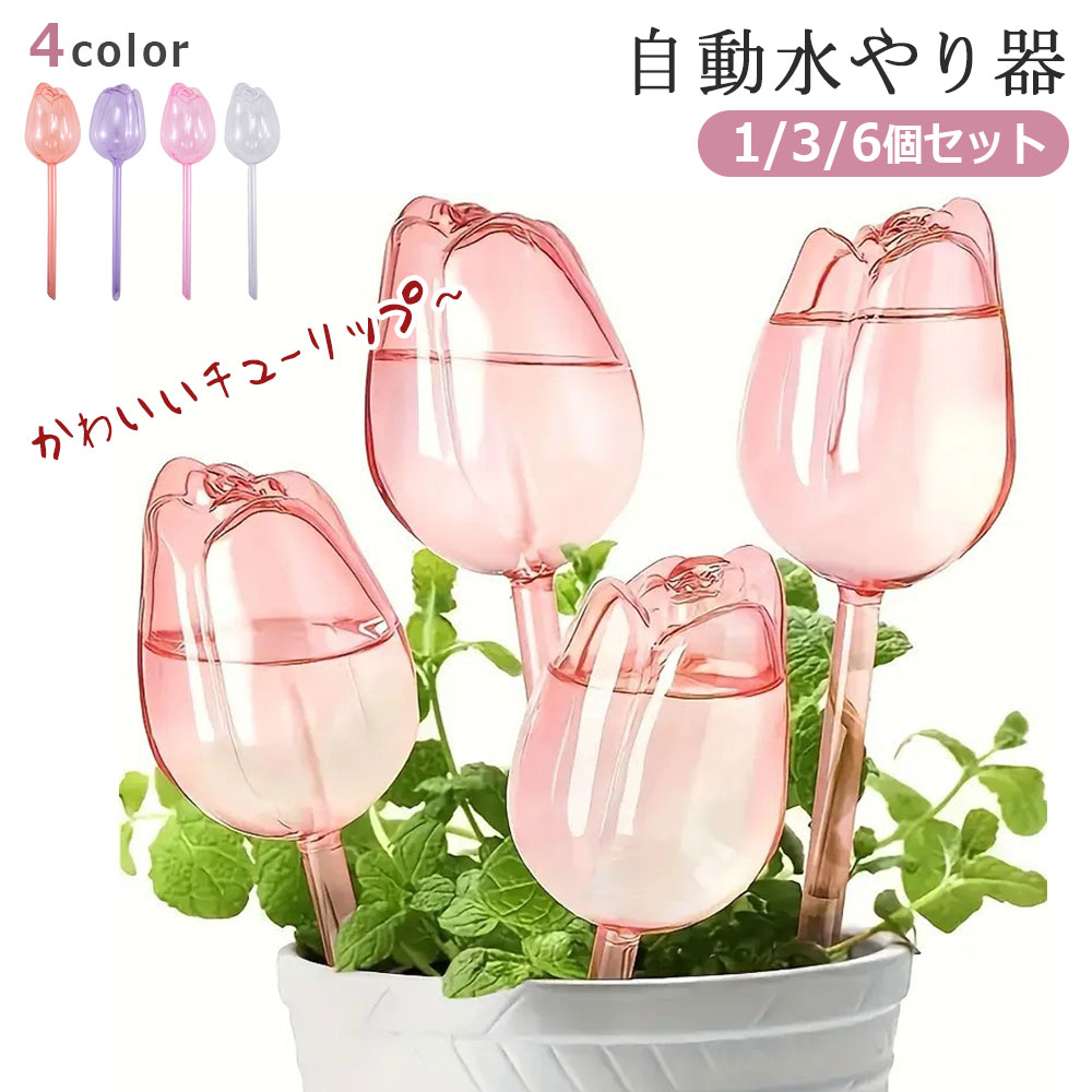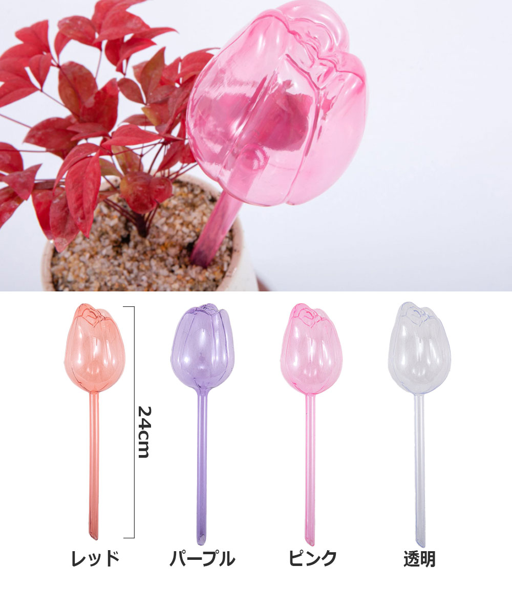 自動水やり器 植物 かわいい 自動 チ レッド パープル ピンク 透明 1個セット 3個セット 6個セット