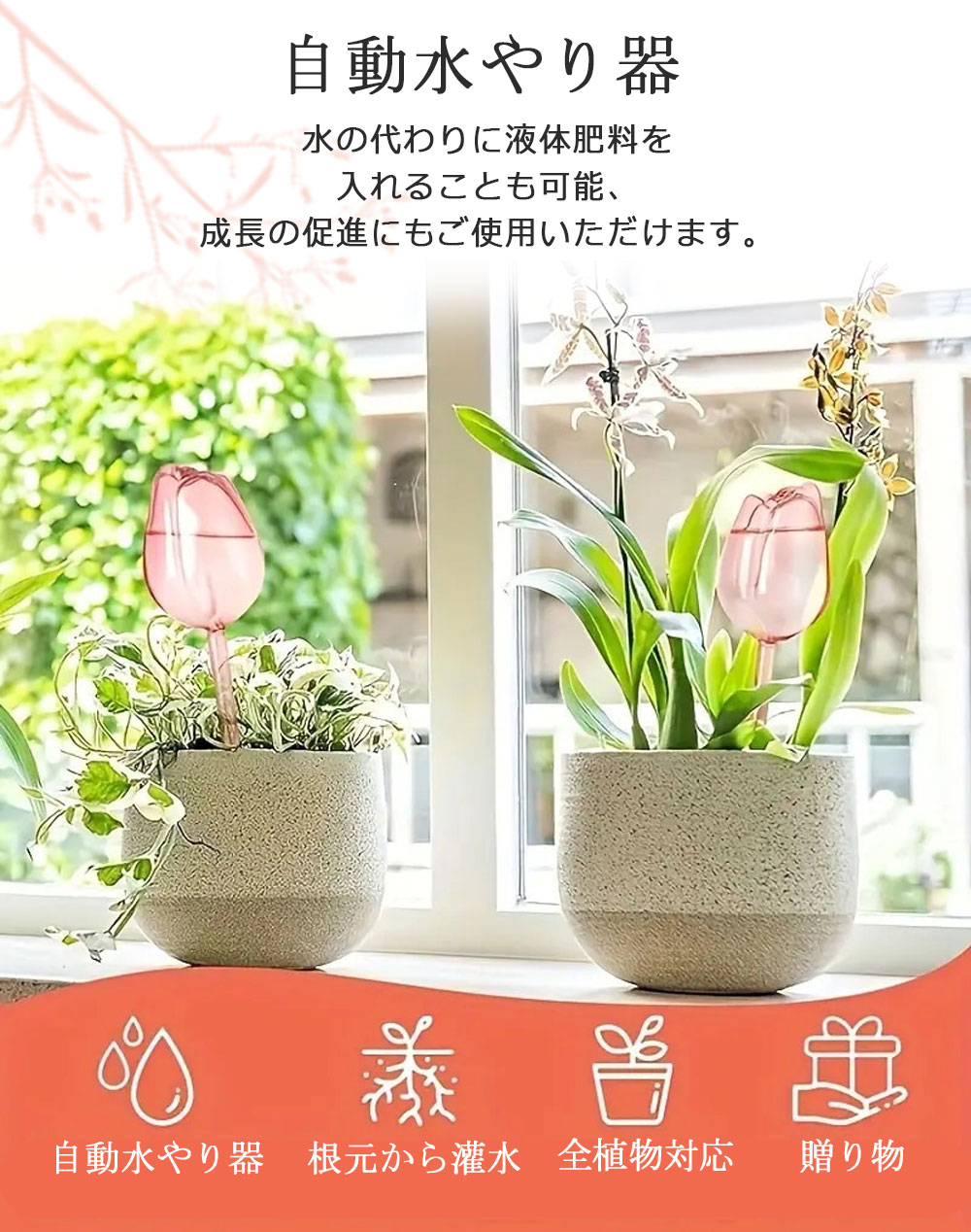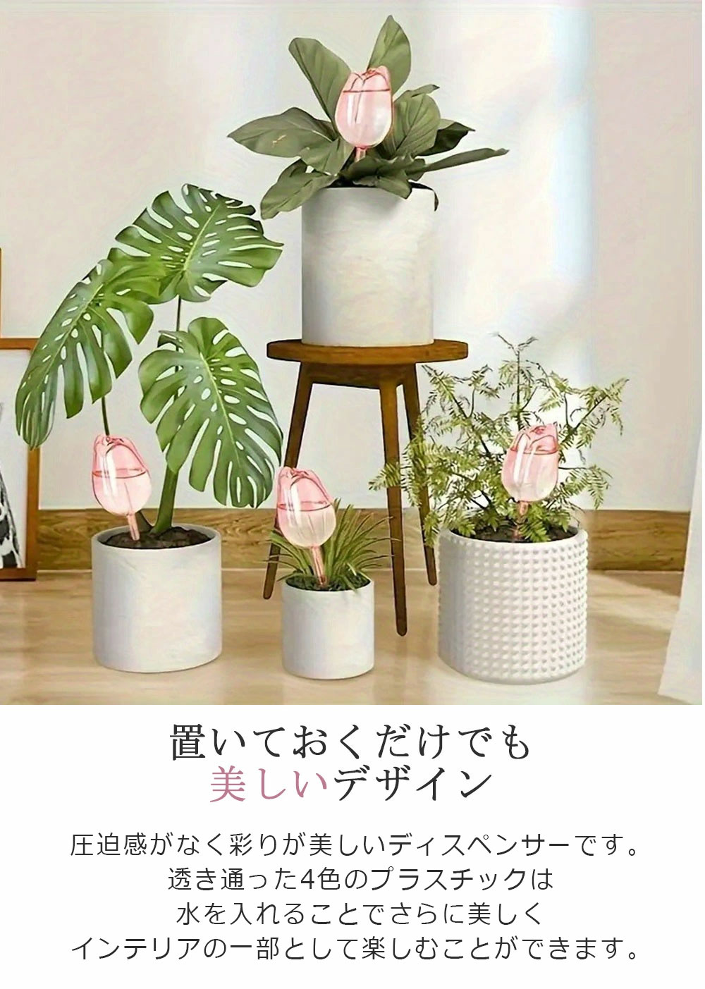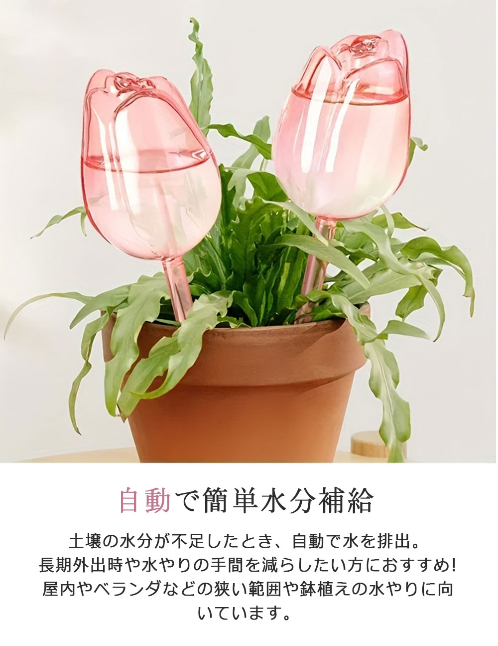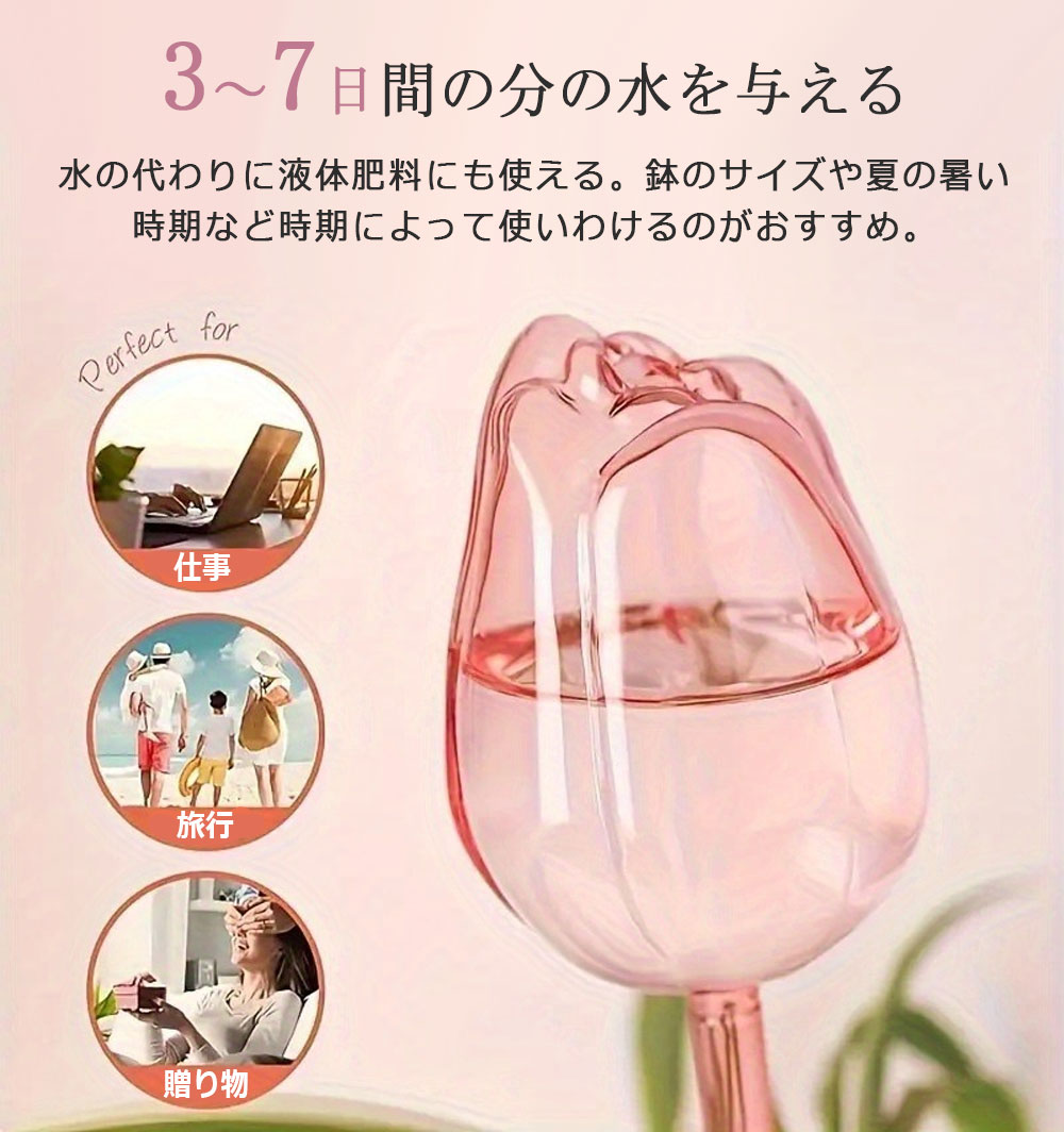 自動水やり器 植物 かわいい 自動 チ レッド パープル ピンク 透明 1個セット 3個セット 6個セット