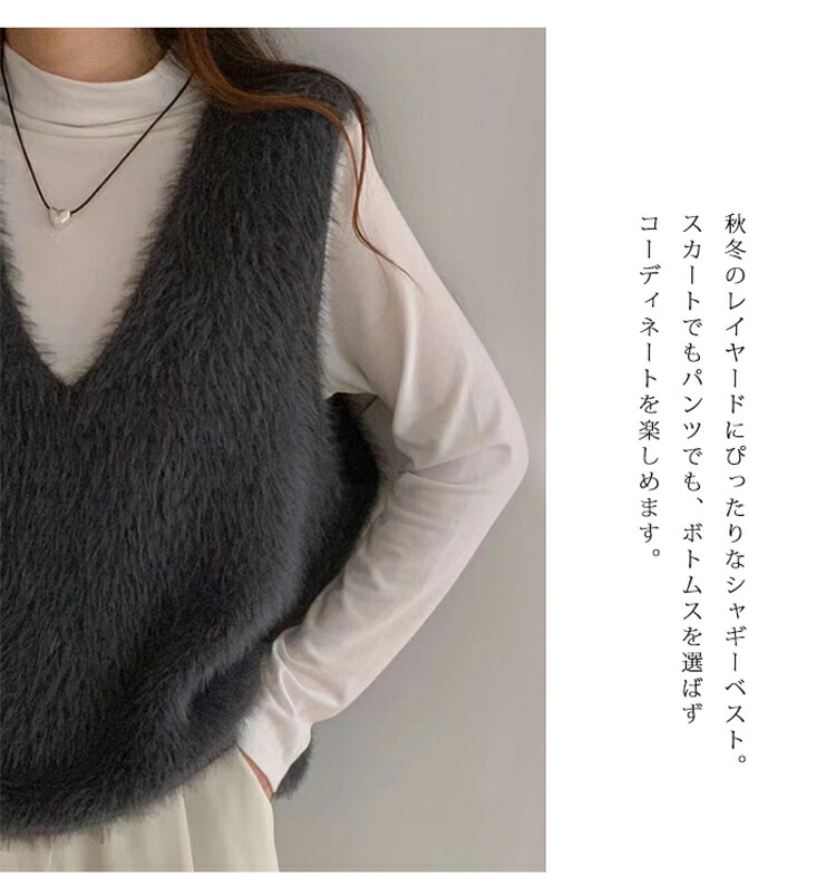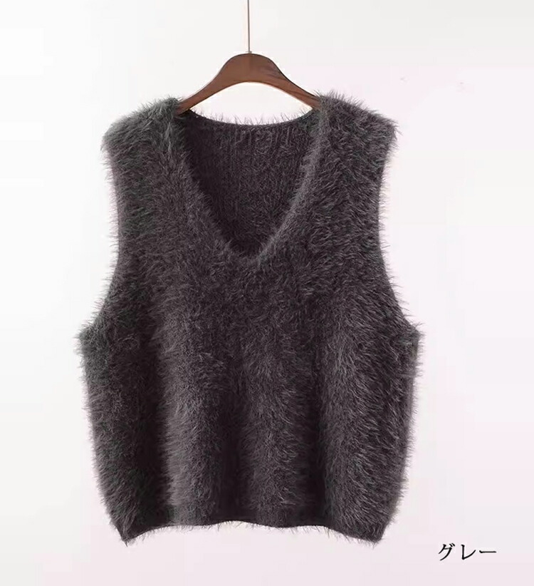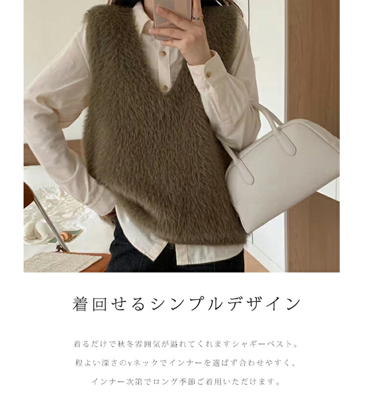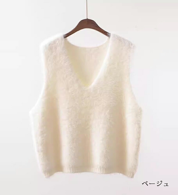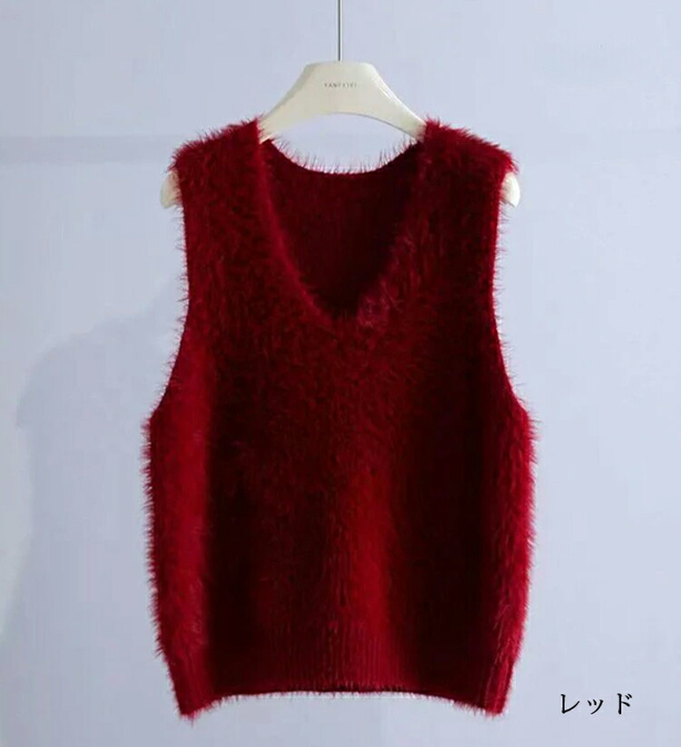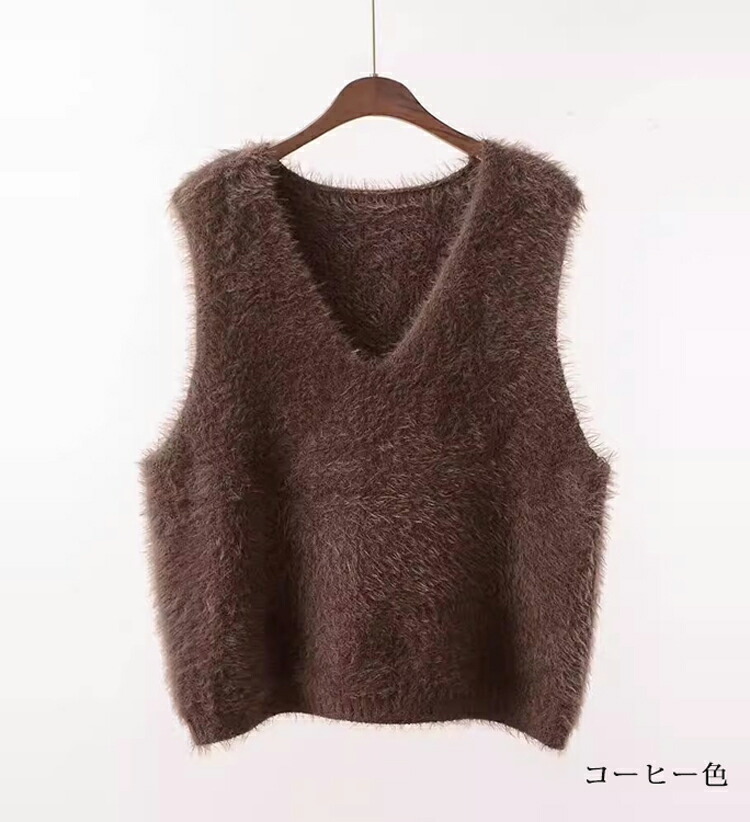 ニットベスト レディース シャギーベス トップス ベスト 豊富 グレー コーヒー カーキグリーン らくだ色 ブラック ホワイト ベージュ オリーブ色 レッド ラメ・ブラック(NEW!) ラメ・グレー(NEW!)
