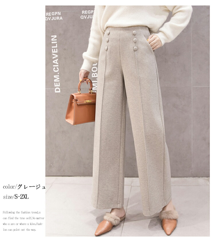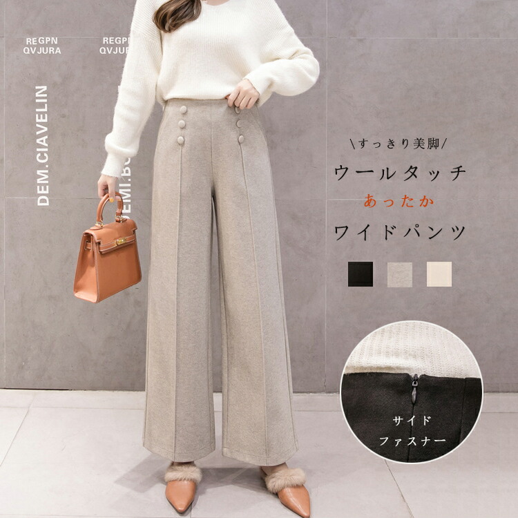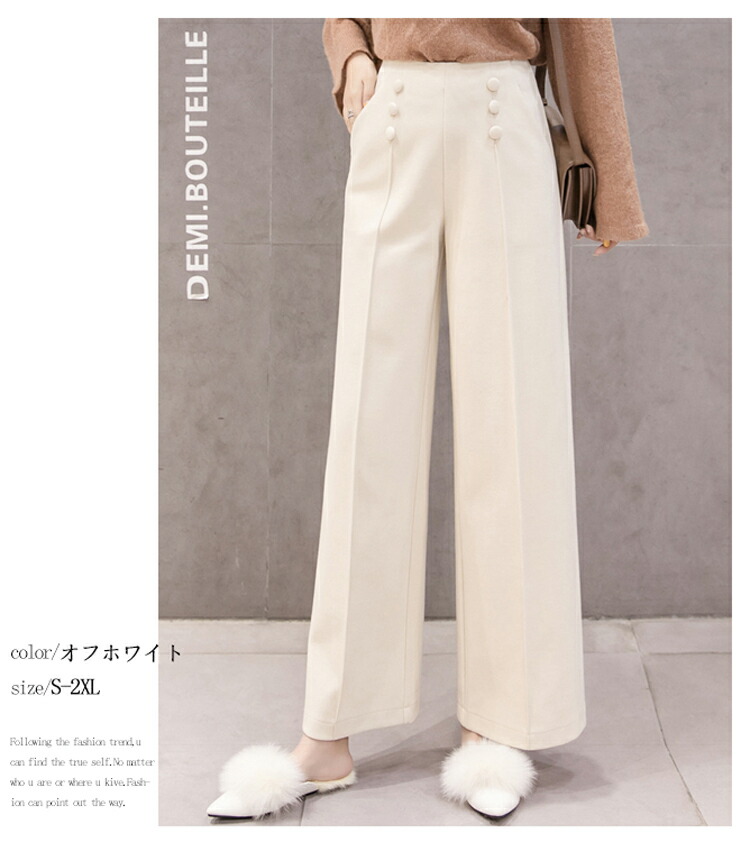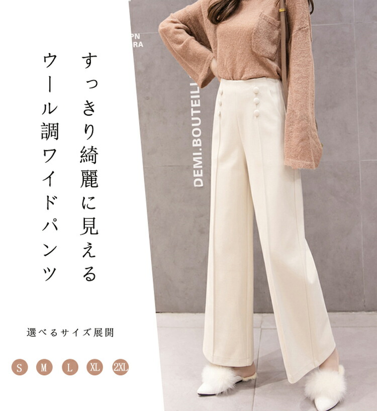 ウール調 パンツ レディース きれいめ レディースファッション 超目玉商品 黒 グレージュ オフホワイト S M L XL 2XL