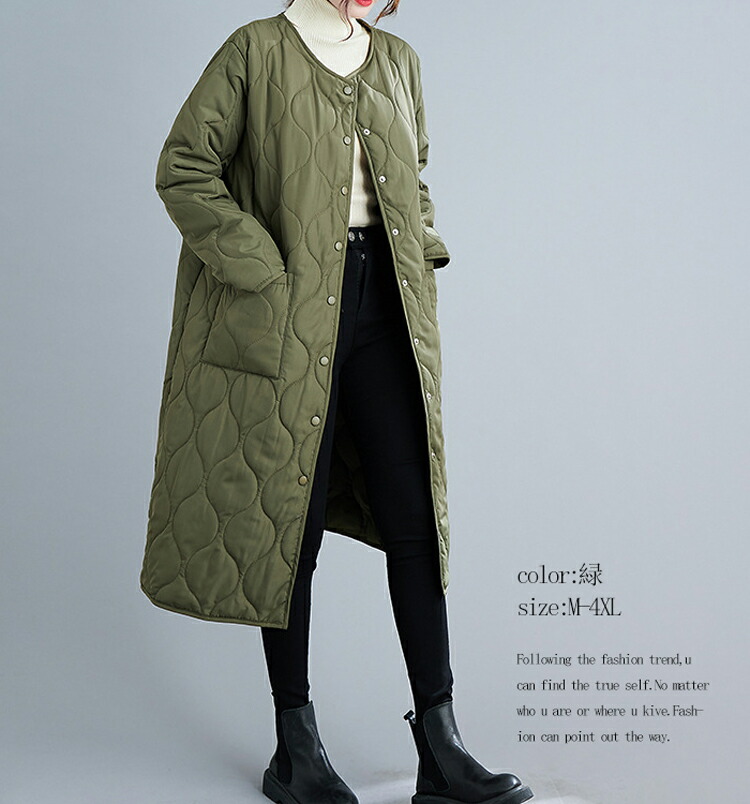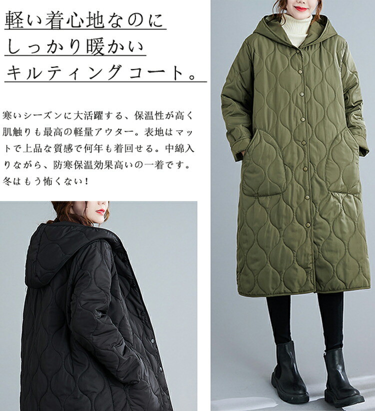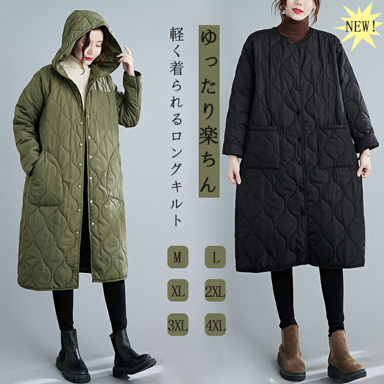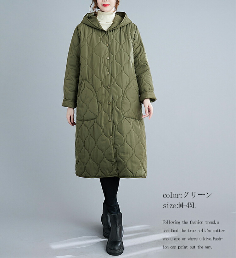 キルティング コート アウター レディ コート ジャケット 早い者勝ち M L XL 2XL 3XL 4XL ブラック(フード付き) グリーン(フード付き) 黒(ノーカラー) 緑(ノーカラー)