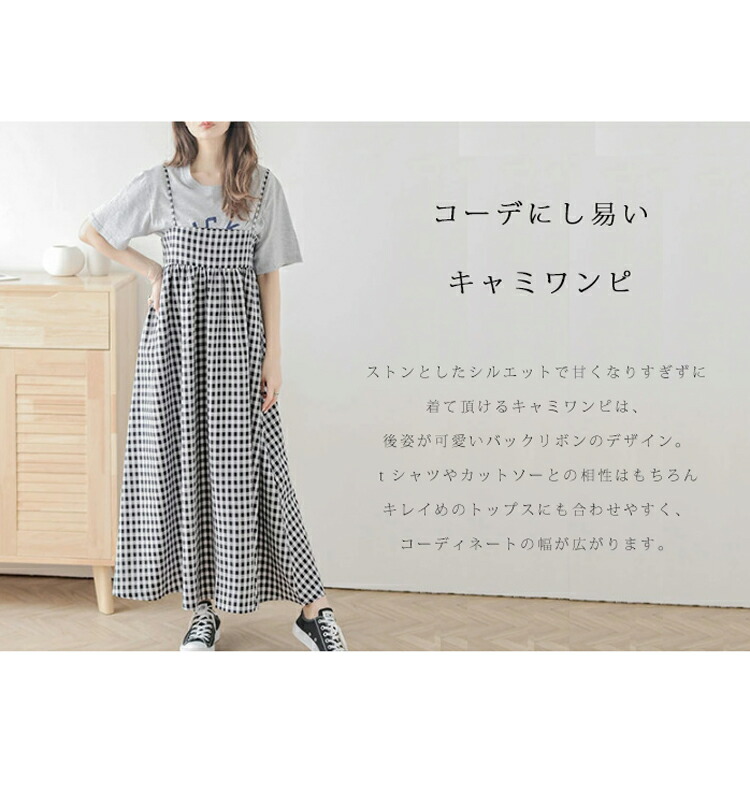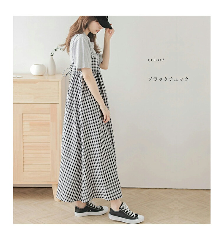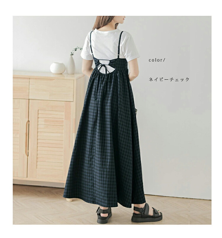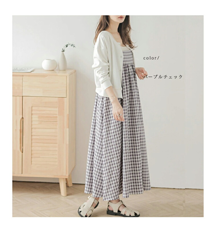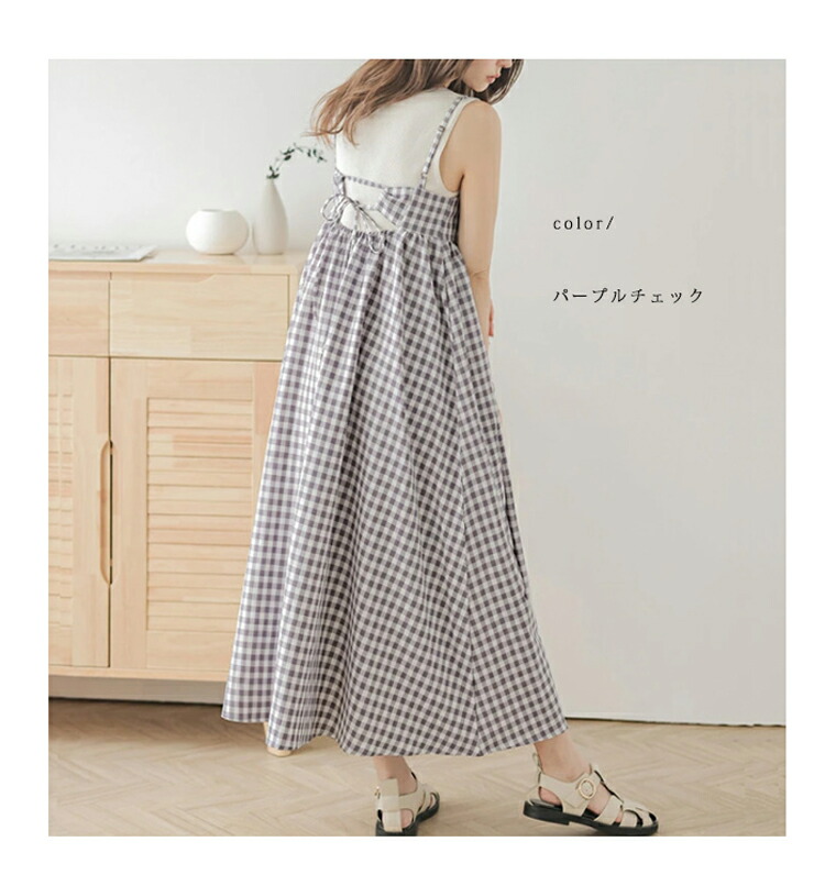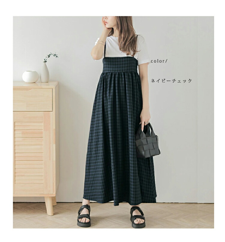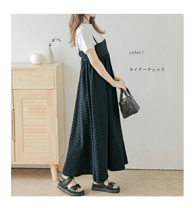 チェック ワンピース キャミソールワン ワンピース 続々登場 ブラックチェック パープルチェック ネイビーチェック