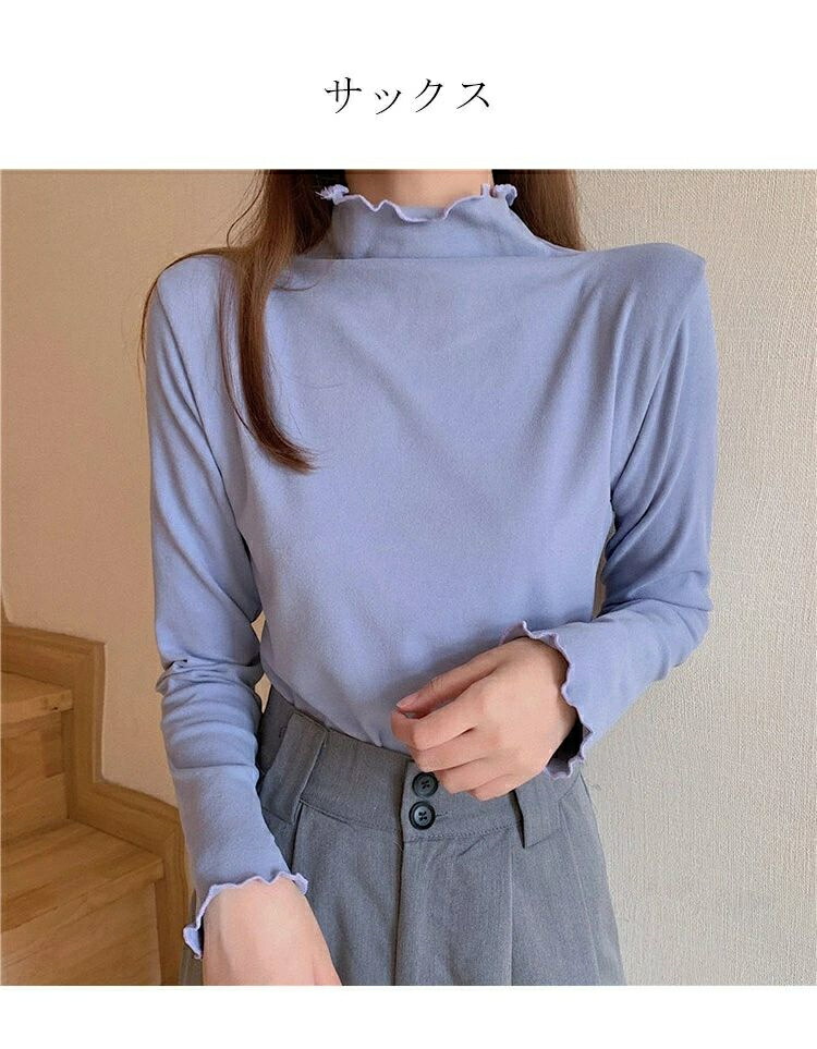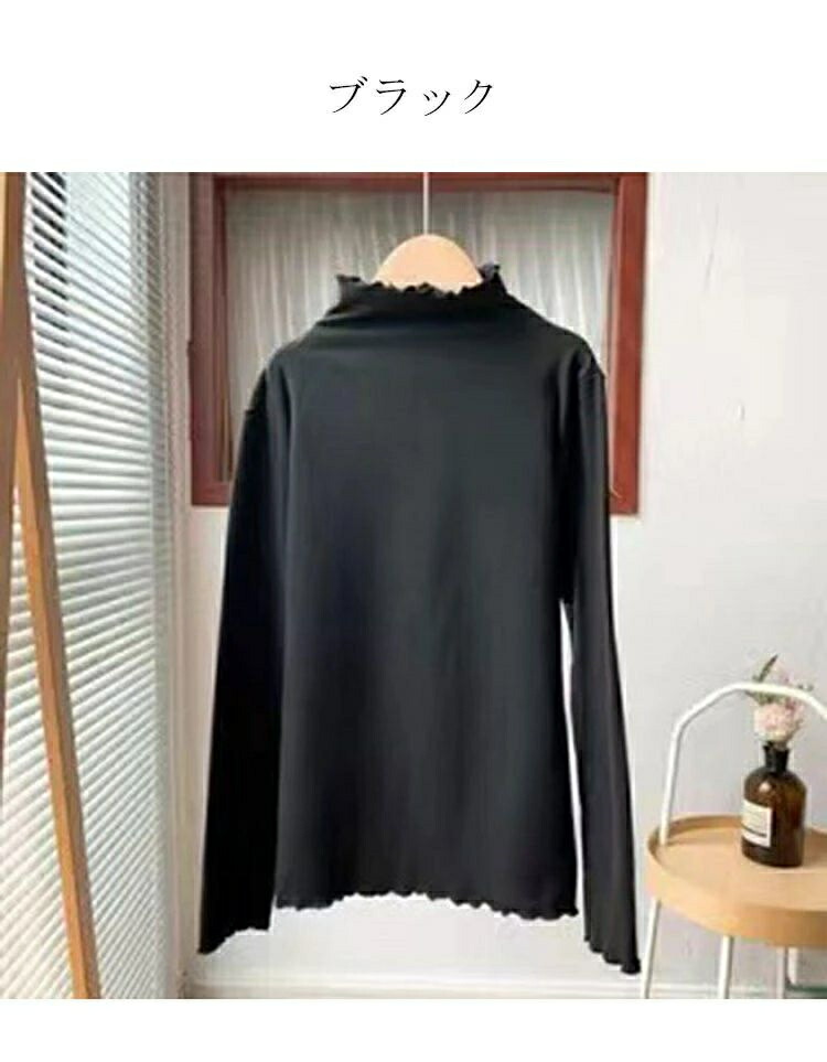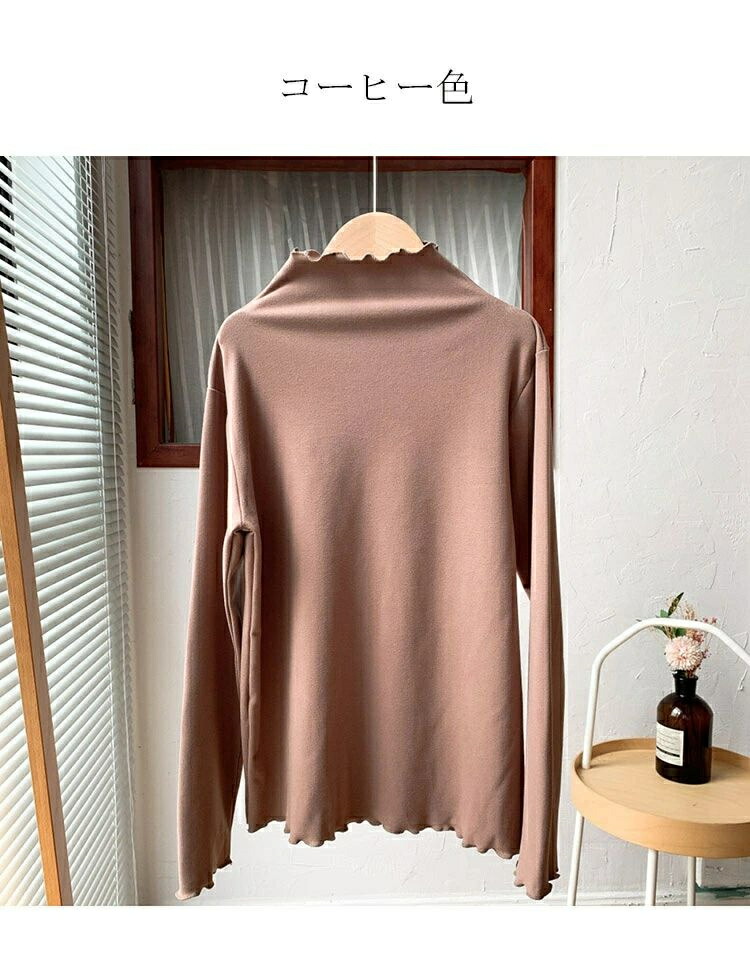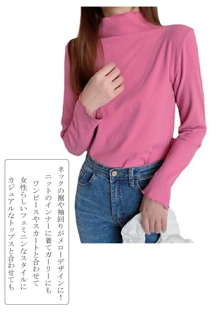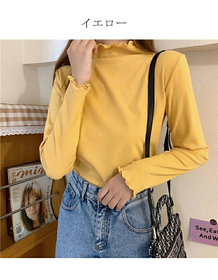 フリル カットソー ハイネック インナ レディースファッション 人気 COLOR1イエロー COLOR2ピンク COLOR4ホワイト COLOR5ブラック COLOR6コーヒー色