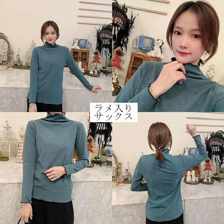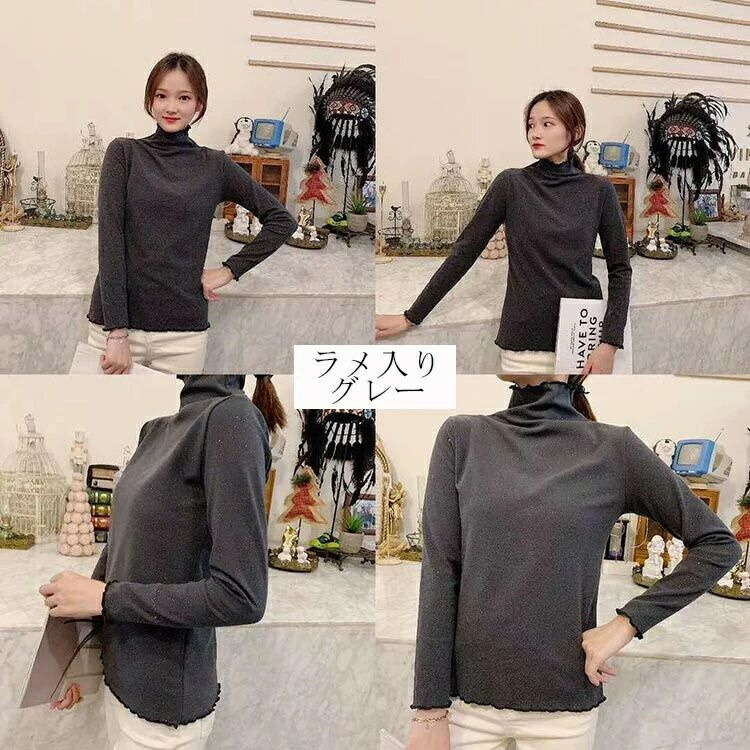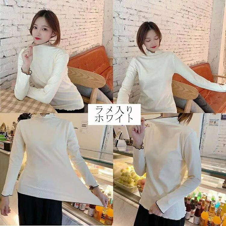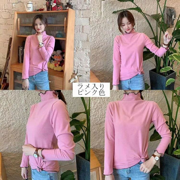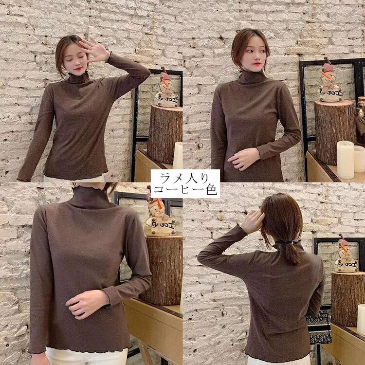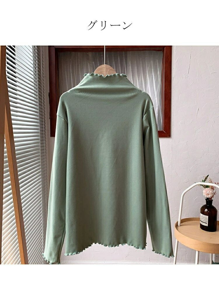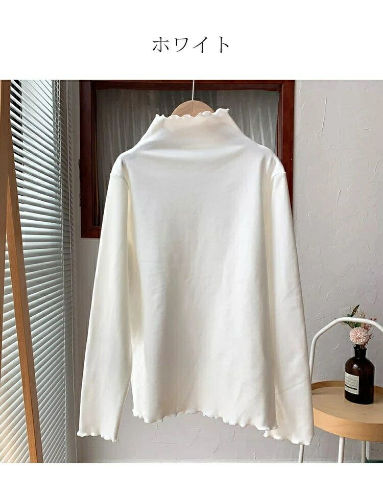 フリル カットソー ハイネック インナ レディースファッション 人気 COLOR1イエロー COLOR2ピンク COLOR4ホワイト COLOR5ブラック COLOR6コーヒー色