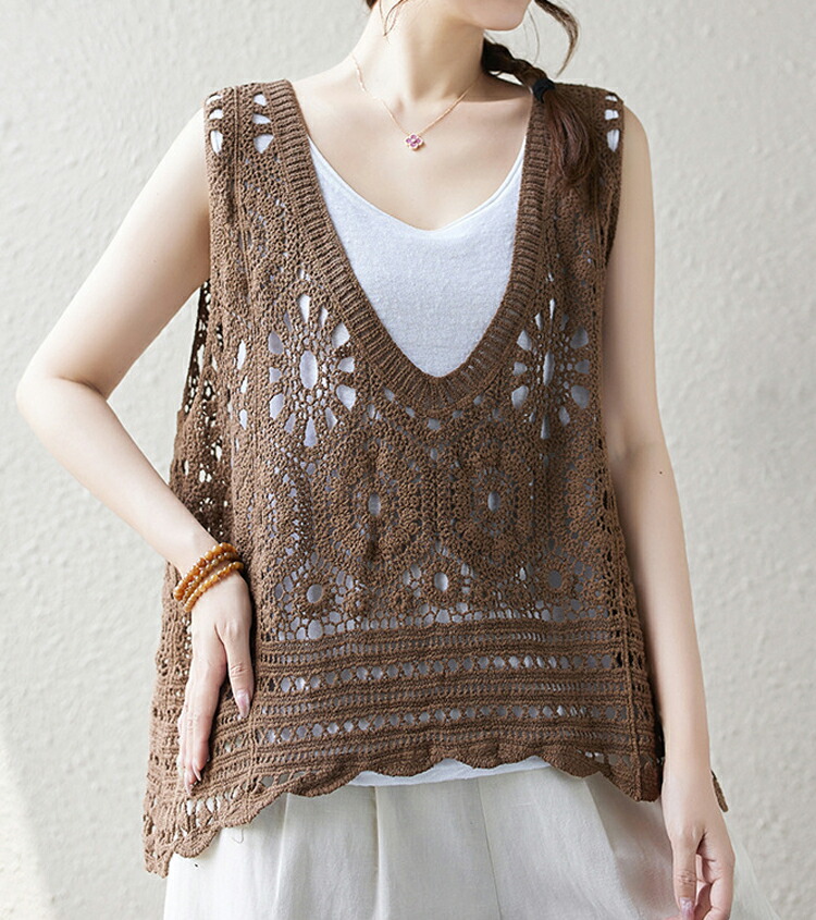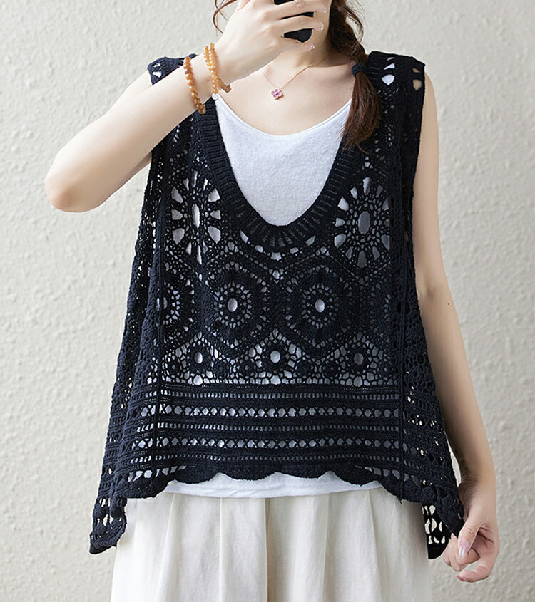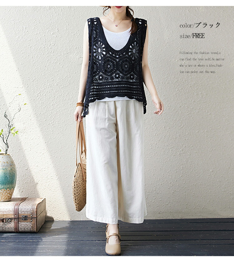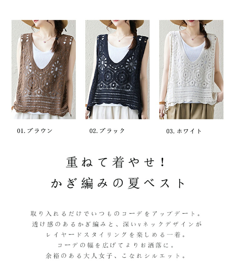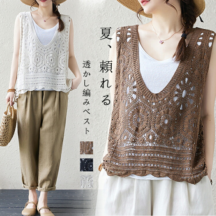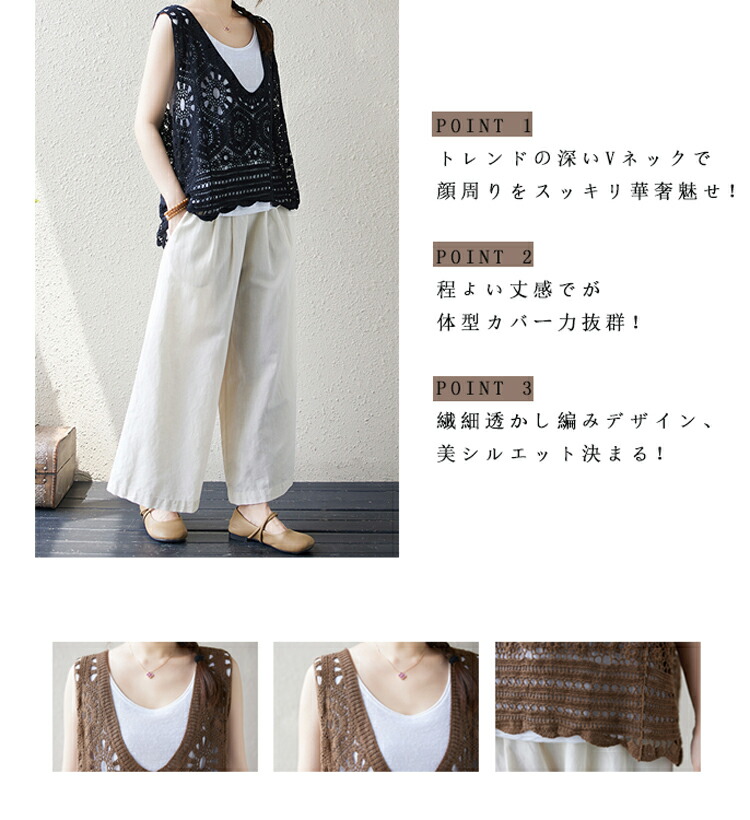 透かし編み ベスト レース レディース トップス ベスト 豊富な品揃え ブラック ホワイト ブラウン