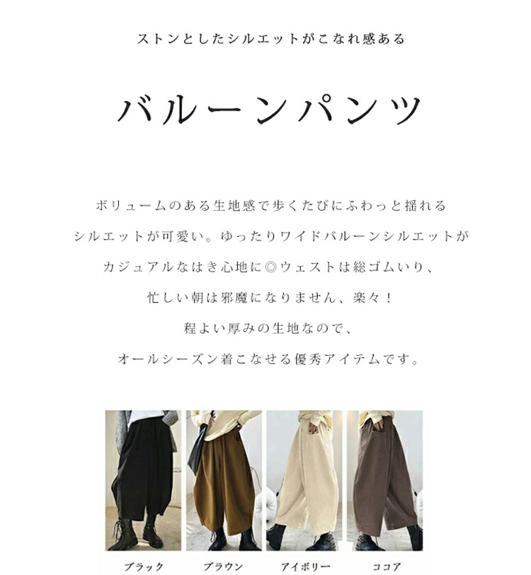 バルーンパンツ レディース コクーンパ レディースファッション 続々登場 ブラック ブラウン アイボリー ココア グリーン ワイン(New!) 裏起毛・ブラック 裏起毛・ココア