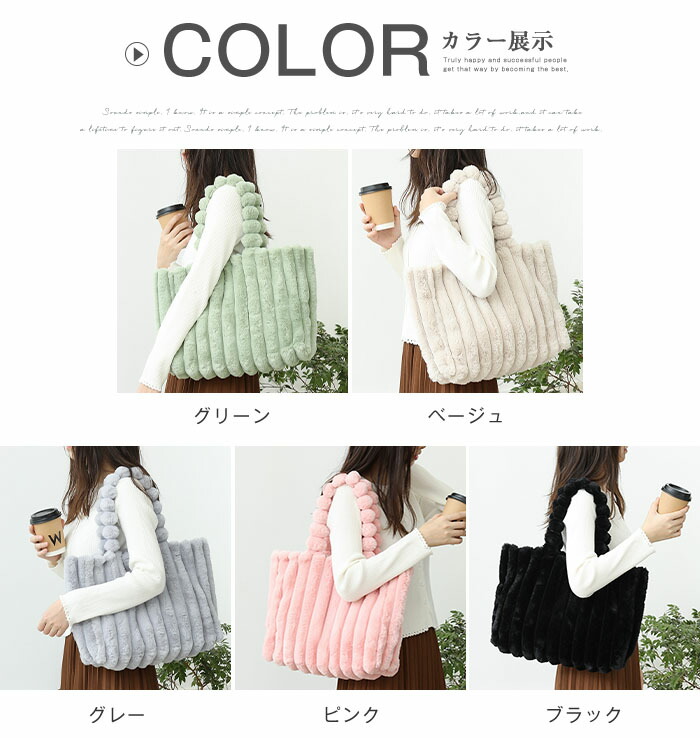 トートバッグ レディース ファーバッグ バッグ 小物 ブランド雑貨 新登場! グレー ピンク グリーン ブラック ベージュ