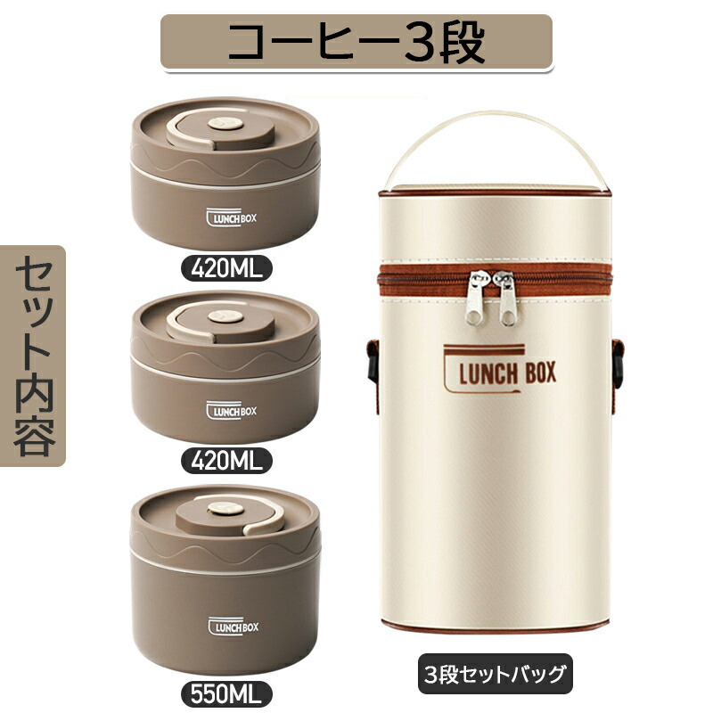 断熱弁当箱セット ランチジャー 大容量 キッチン用品 食器 調理器具 人気 ホワイト2段 コーヒー2段 ブルー2段 ホワイト3段 コーヒー3段 ブルー3段 ホワイト4段 コーヒー4段 ブルー4段