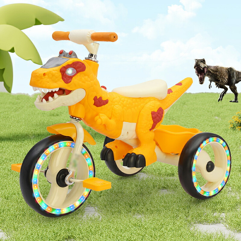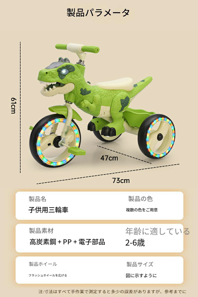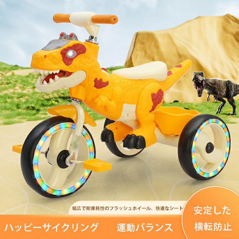 三輪車 恐竜子供用三輪車 ベビーカー おもちゃ 乗用玩具 三輪車 三輪車 通販 グリーン オレンジカラー ピンク