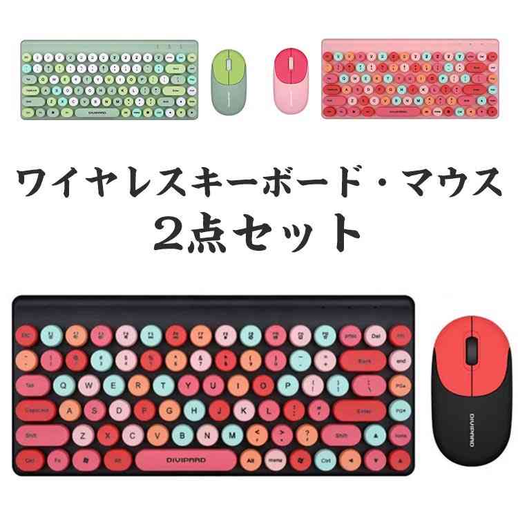 2.4GHz ワイヤレスマウス 円形キ ブラックカラフル ピンク グリーン
