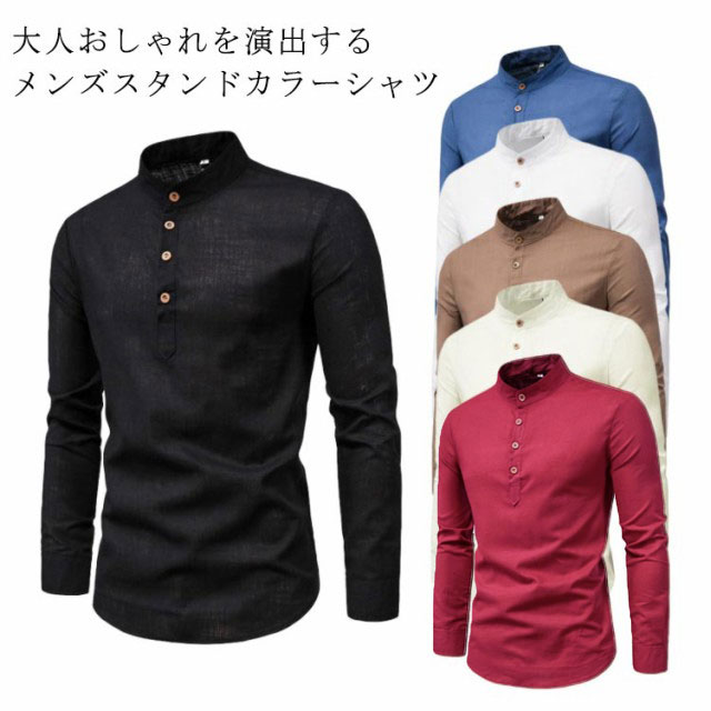 スタンドカラー シャツ メンズ おしゃ トップス カジュアルシャツ 新作 ホワイト ブラック レッド ダークブルー ブラウン グレー M L XL 2XL 3XL 4XL 5XL