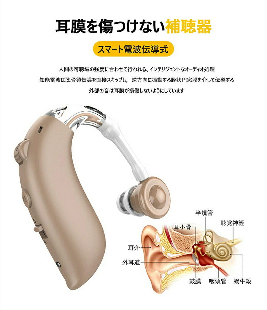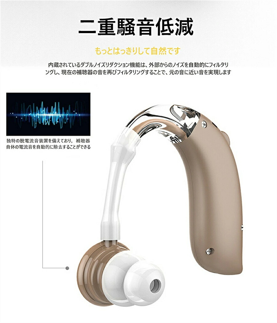 補聴器 耳掛け式 デジタル補聴器 超軽 肌色 ブルー ブラック