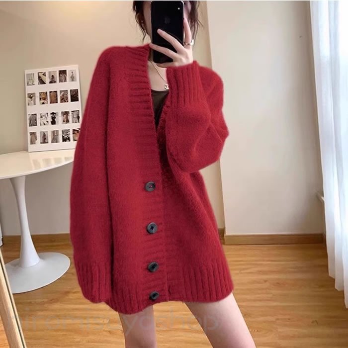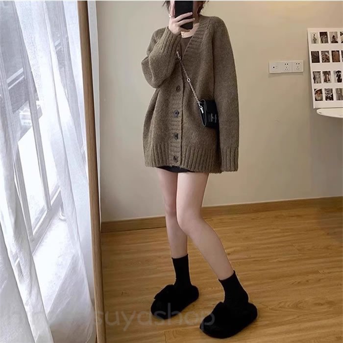 新作カーディガン冬 レディースカーディ トップス カーディガン ボレロ 新作 ブラウン レッド ダークグレー