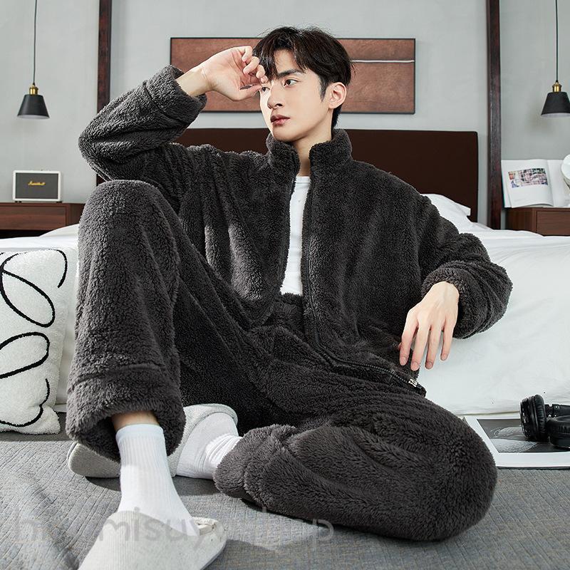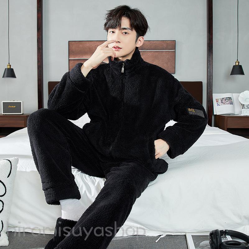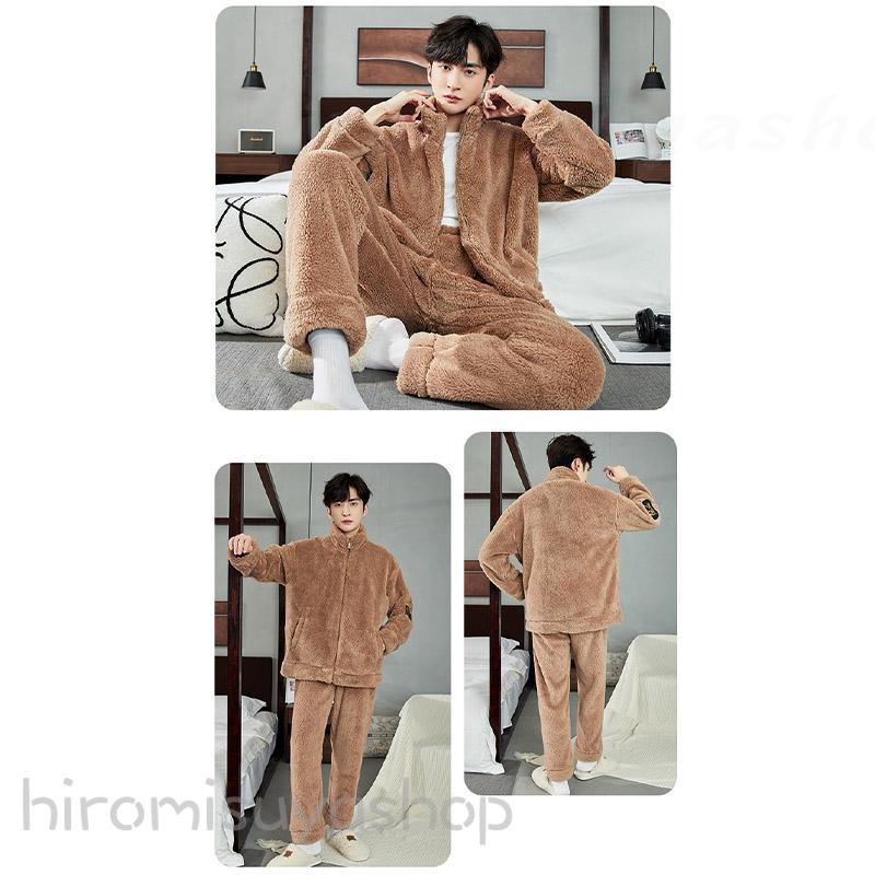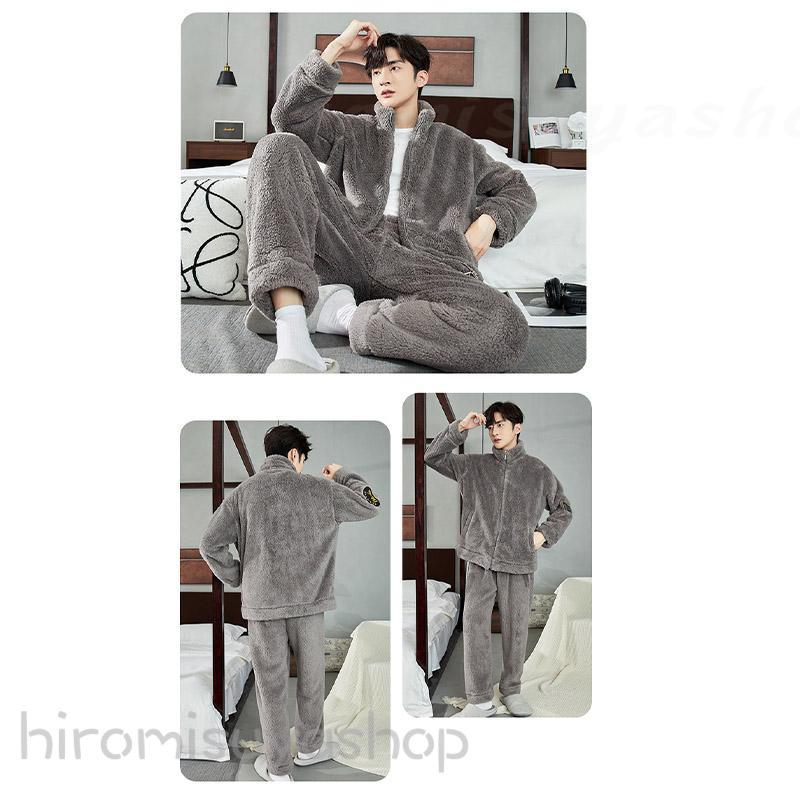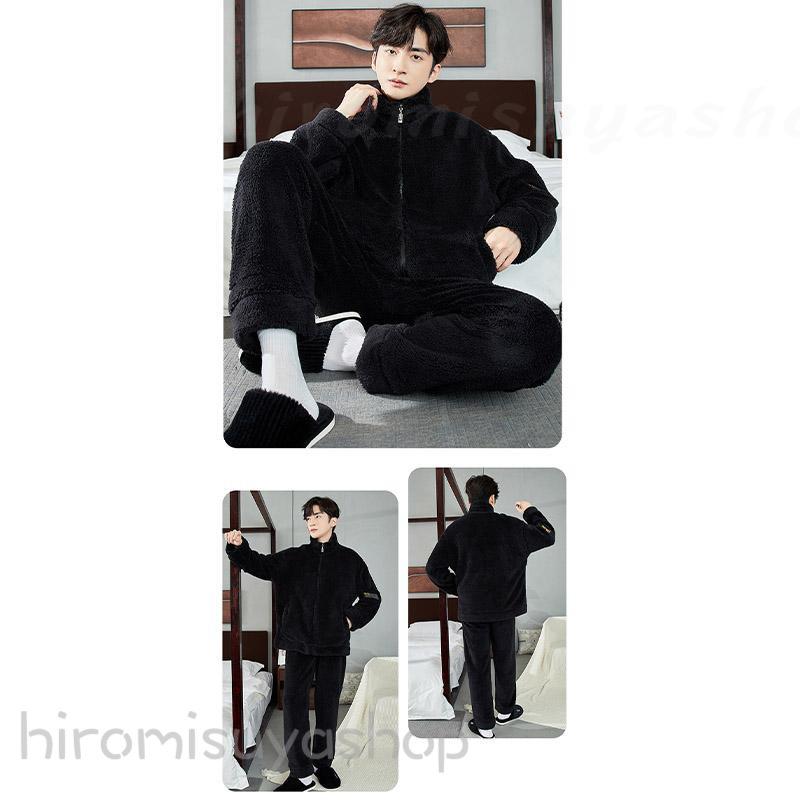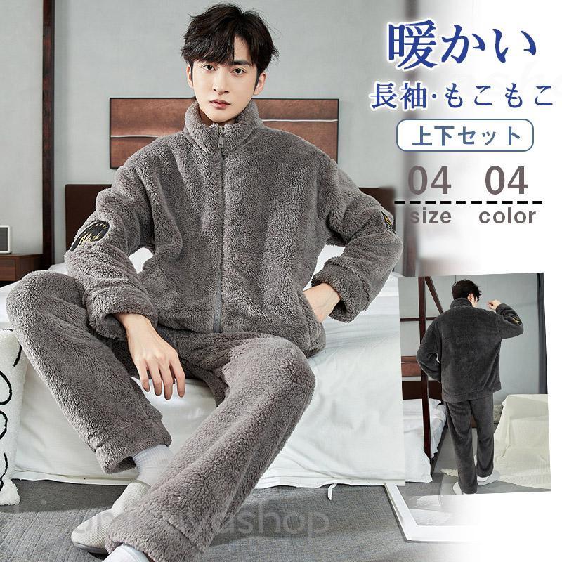 パジャマ メンズ 長袖 冬用 防寒 暖 インナー 下着 ナイトウエア 新作 ブラック モカ ダークグレー グレー L XL 2XL 3XL