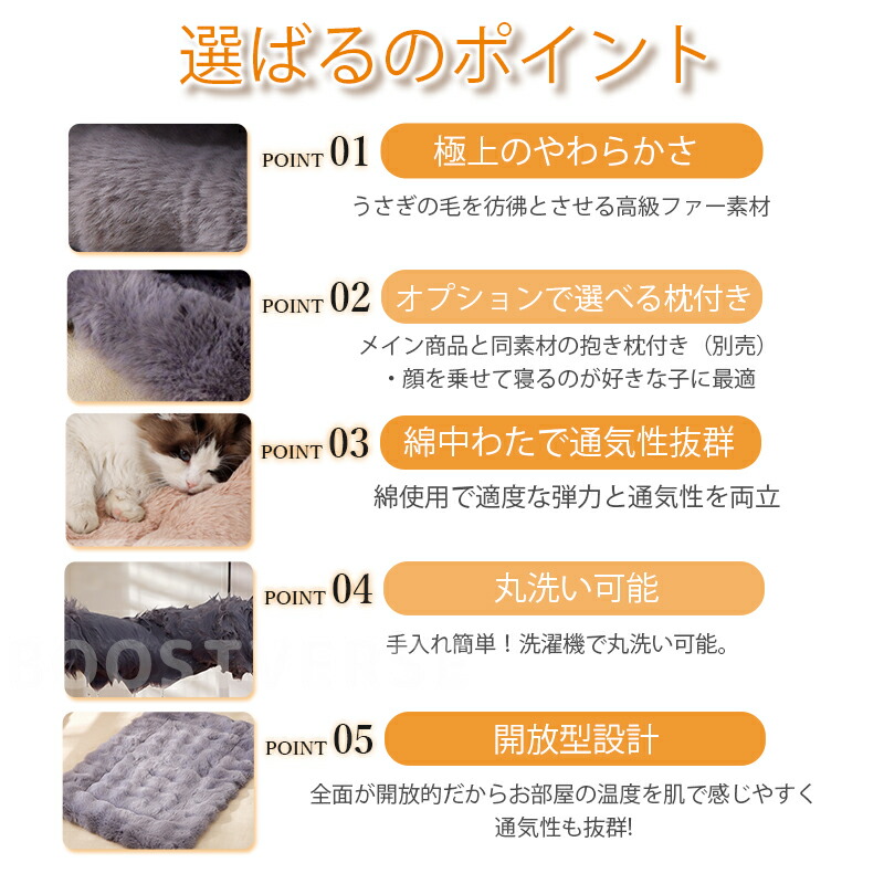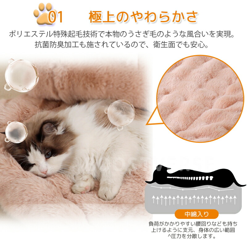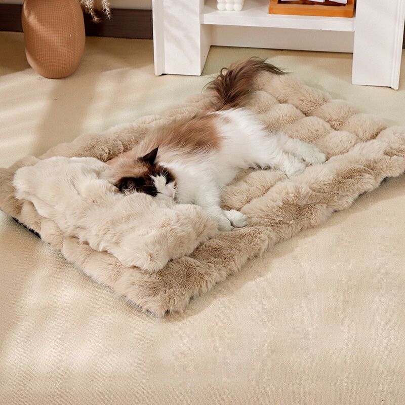 ふわふわのファー調素材を使用したペットマットは、肌に優しく、愛寵に心地よい安らぎの空間を提供します。高齢のペット、小さな子ペット、手術後の回復期のペットに特におすすめです。内部には高弾性PP棉を採用し、優れた体圧分散性、反発力、通気性を実現。愛犬の深い眠りをサポートします。