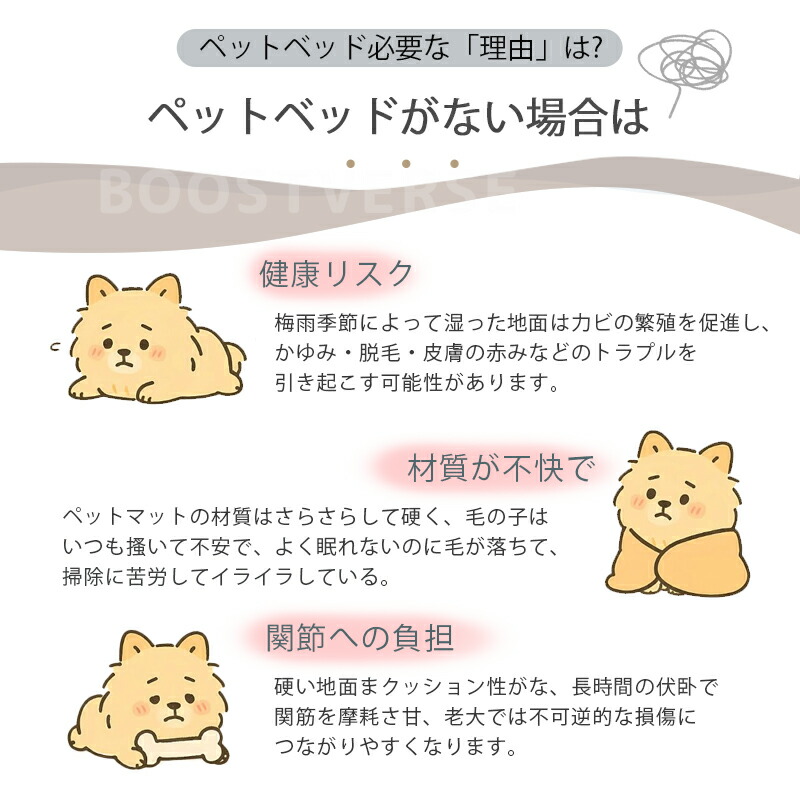 底面には滑り止め処理を施しているため、ペットが動いてもマットがずれにくく、安心してご使用いただけます。寝返りも打ちやすく、安定した休息を提供します。