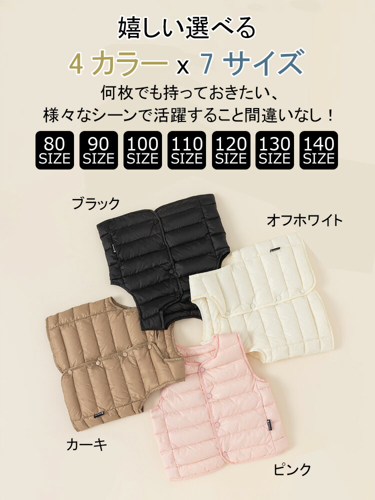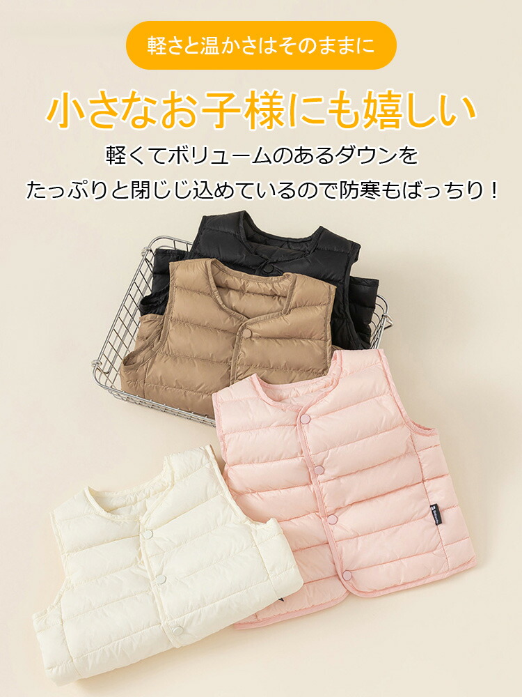 キッズ ダウン ベスト ジャンパー ジ キッズ コート ジャケット 早い者勝ち ブラック カーキ オフホワイト ピンク 80cm 90cm 100cm 110cm 120cm 130cm 140cm