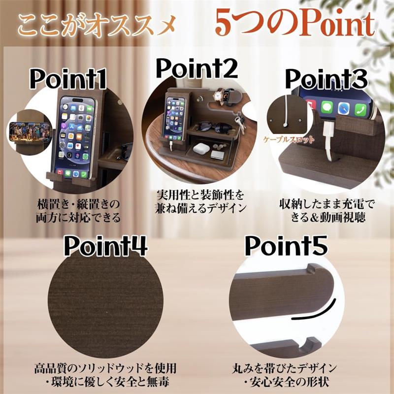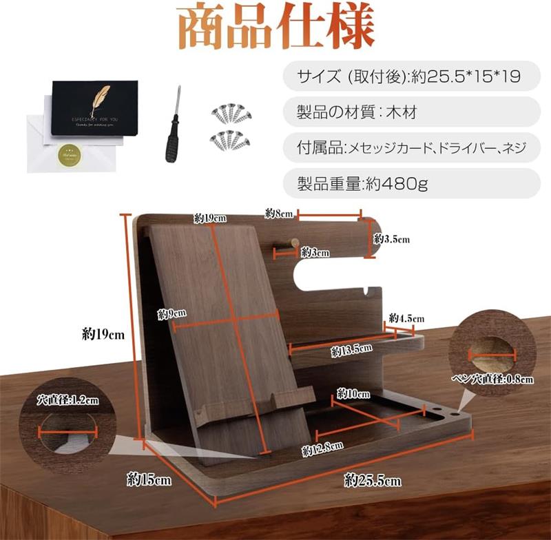 誕生日プレゼント 男性 父親誕生日プレ スマートフォン 携帯電話用アクセサリー スマートフォンスタンド 人気 ブラックウォールナット 無垢材 ブラウン ブラック